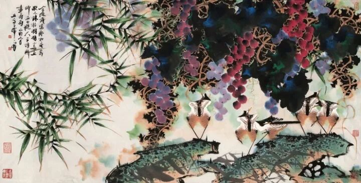 韩天衡 葡萄青竹 70x137cm 纸本设色 2005年
