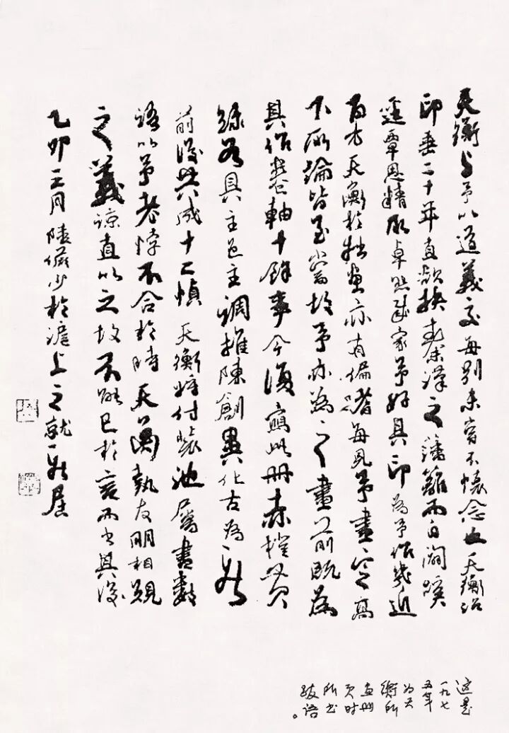 有一次他临摹了一个石涛的长卷,他后面有一段题跋,大意是“我要跟石涛血战到底”。他说:“天衡,你看我和石涛谁画得好?”我讲:“你画得比石涛好。”他问:“为什么?”我讲:“因为你是临石涛的,构图、章法、造型都不谈。但是石涛的线条,有的时候可能还有些败笔,而你的线条真的是厚重老辣,具有张力跟拉力,所以这一点,你跟石涛血战,血战的结果是你胜。”他讲:“天衡啊!你是真的有真知灼见。”