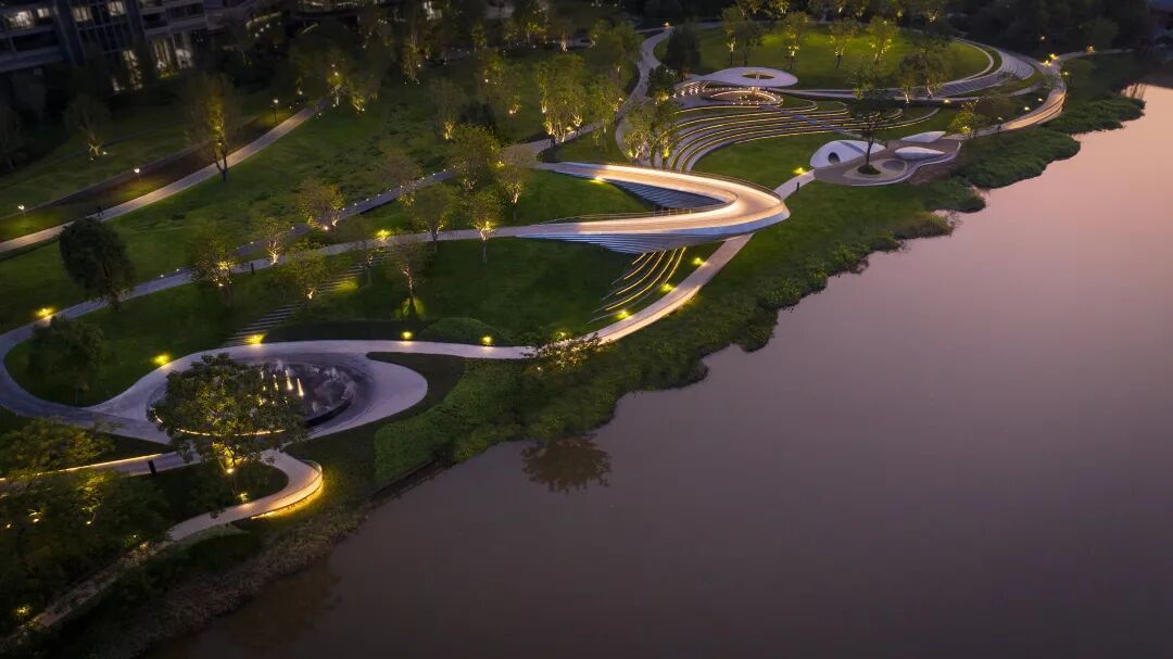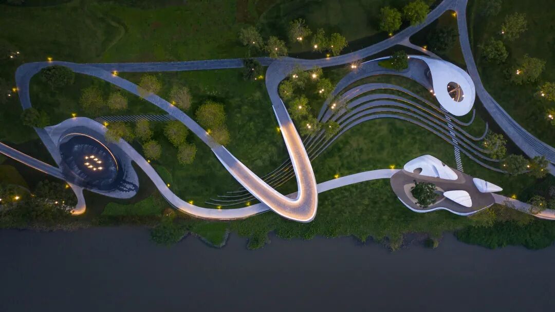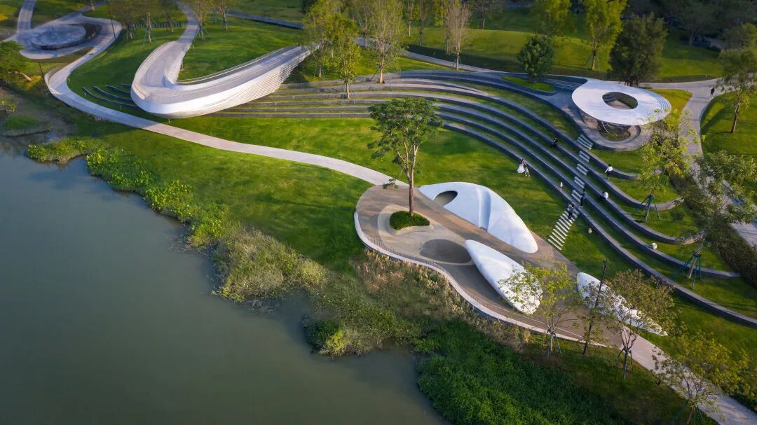 灵动的艺术构筑物,以追逐自然、力量与工艺的曲面美学,契合公园的线条语言,沉浸纯粹归璞的高雅格调居所。