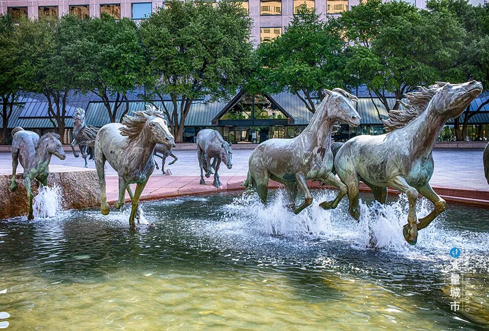 ▼ 达拉斯先锋广场内的世界最大铜牛雕塑群——《赶牛》