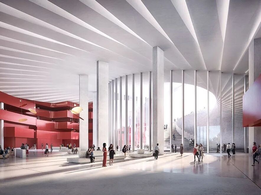 作为艺术家和公众的艺术殿堂,全新的上海大歌剧院蕴含了动态的理念。正如歌剧演员表演时的身体舞动,抑或一面扇子的动态展开,均为大歌剧院的外表面和内部空间注入灵感,从门厅大堂延申至三个观众厅。
