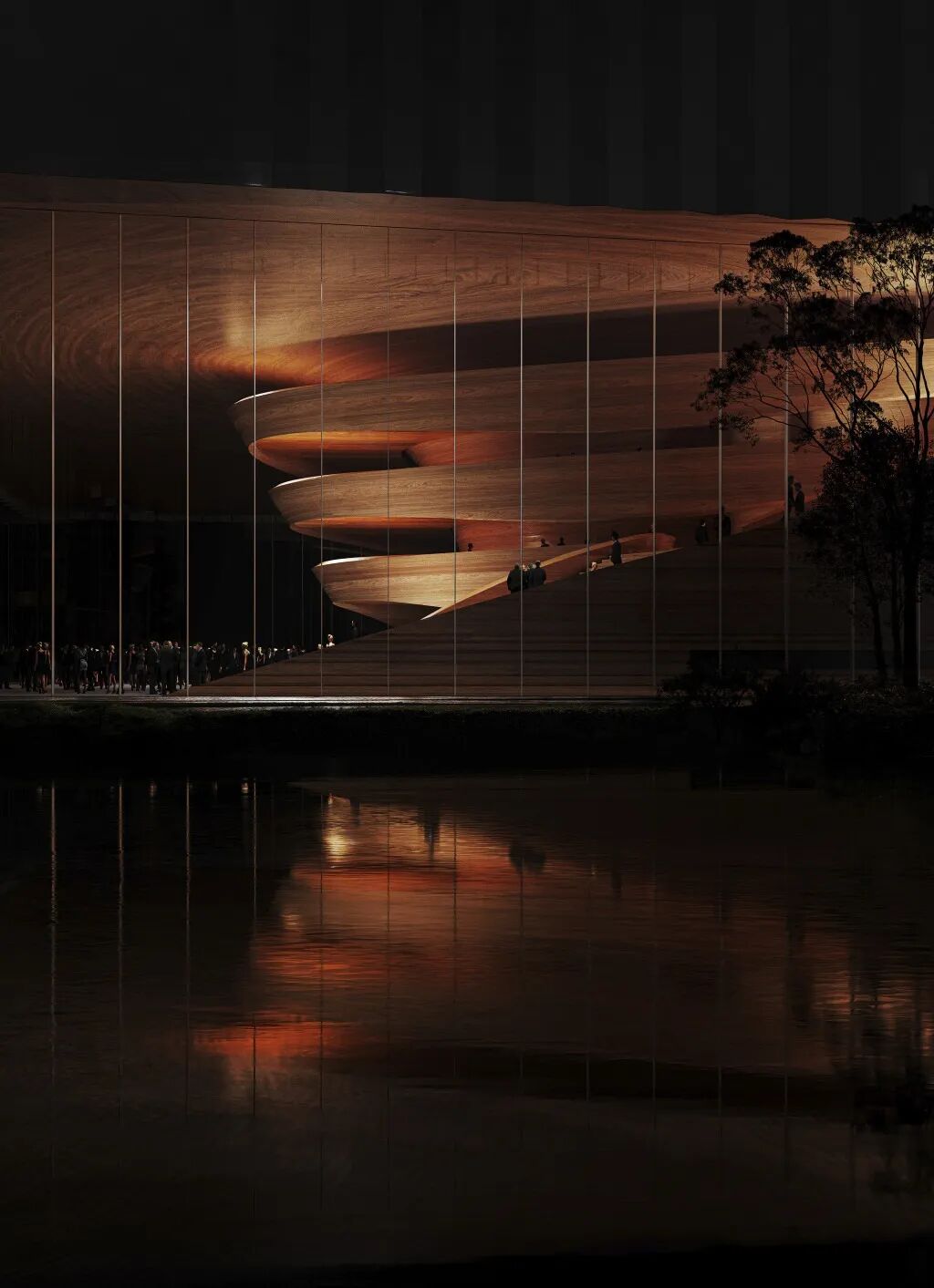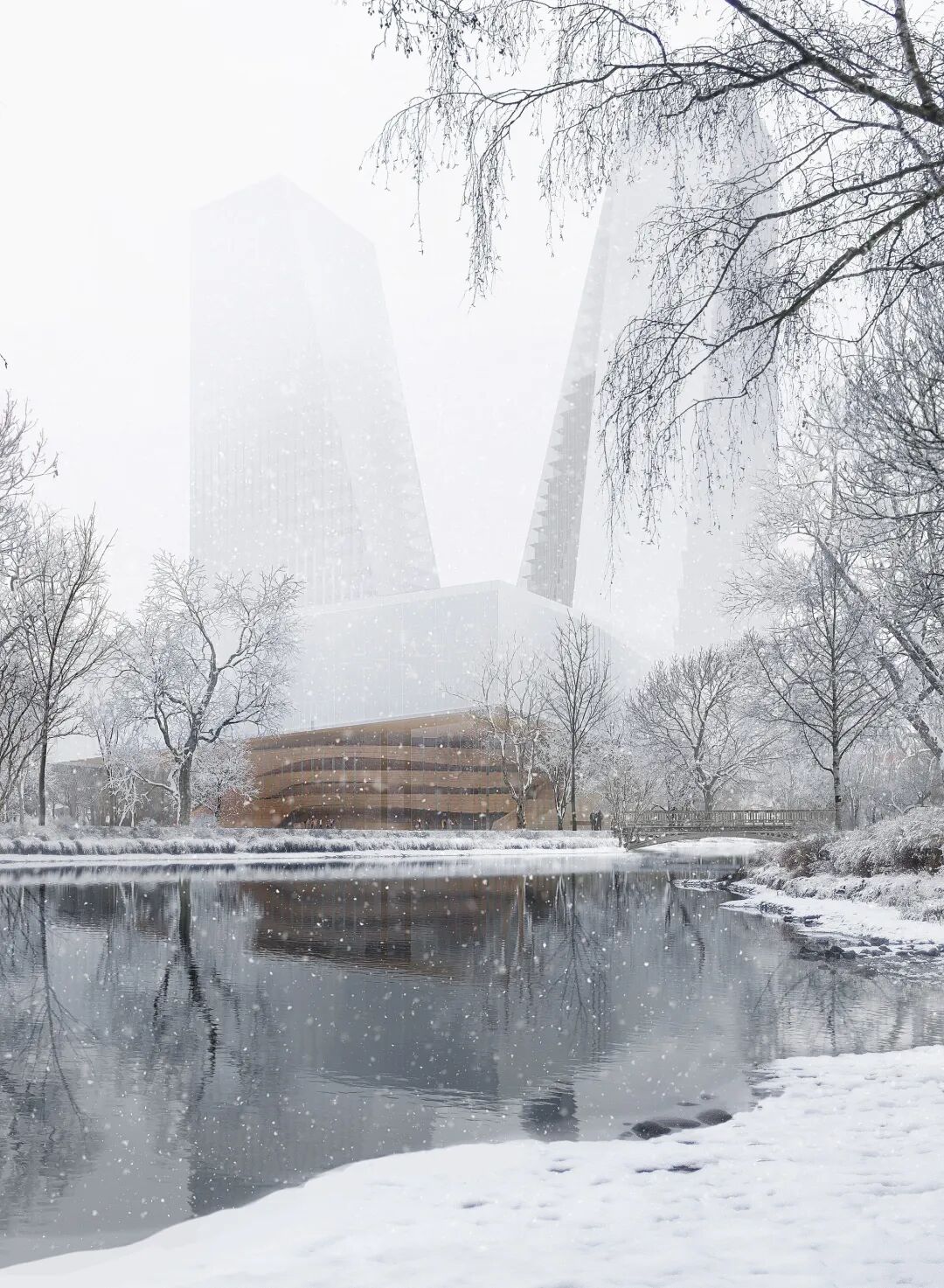 位于黄浦江边的上海歌剧院”折扇“形的上海歌剧院,具有浓厚的东方美学特色。同样有MIR的渲染天赋加持,建筑蒙上了一层褪色的自然意境,典雅氛围油然而生。不是我说,这张图真的欺骗了好多人以为这个项目早已竣工!