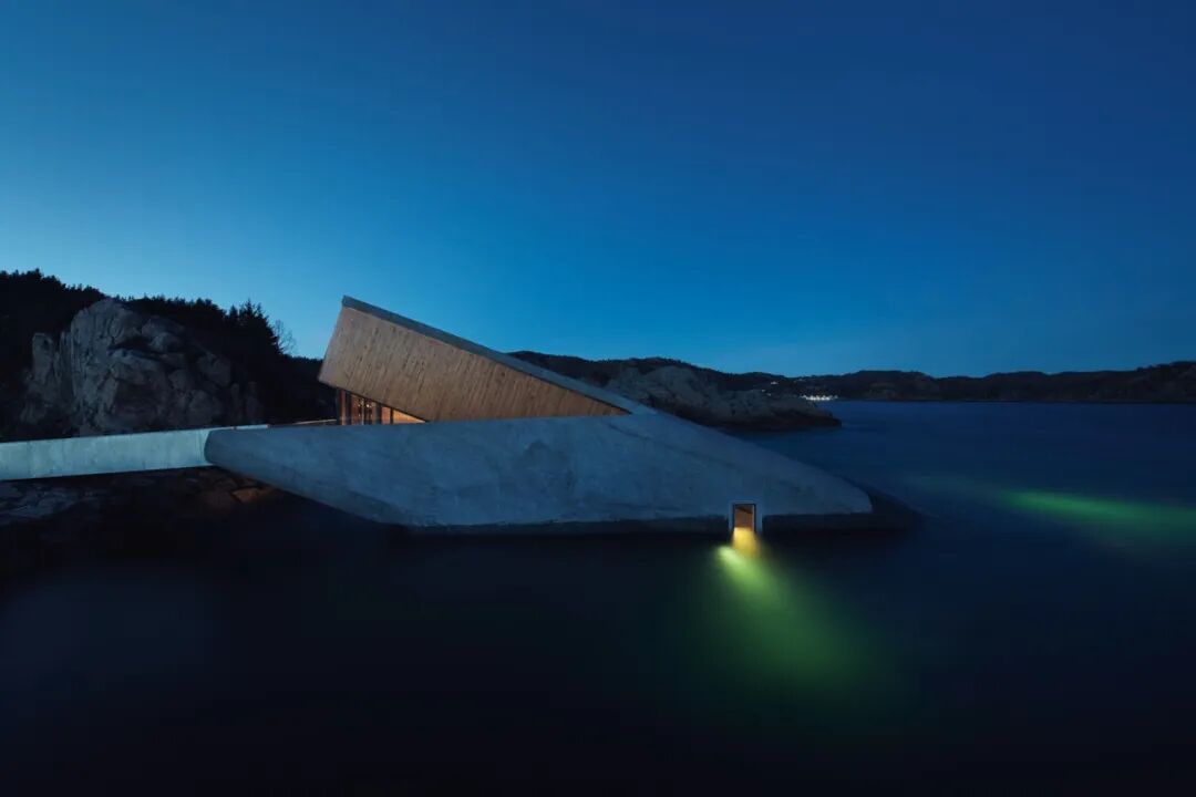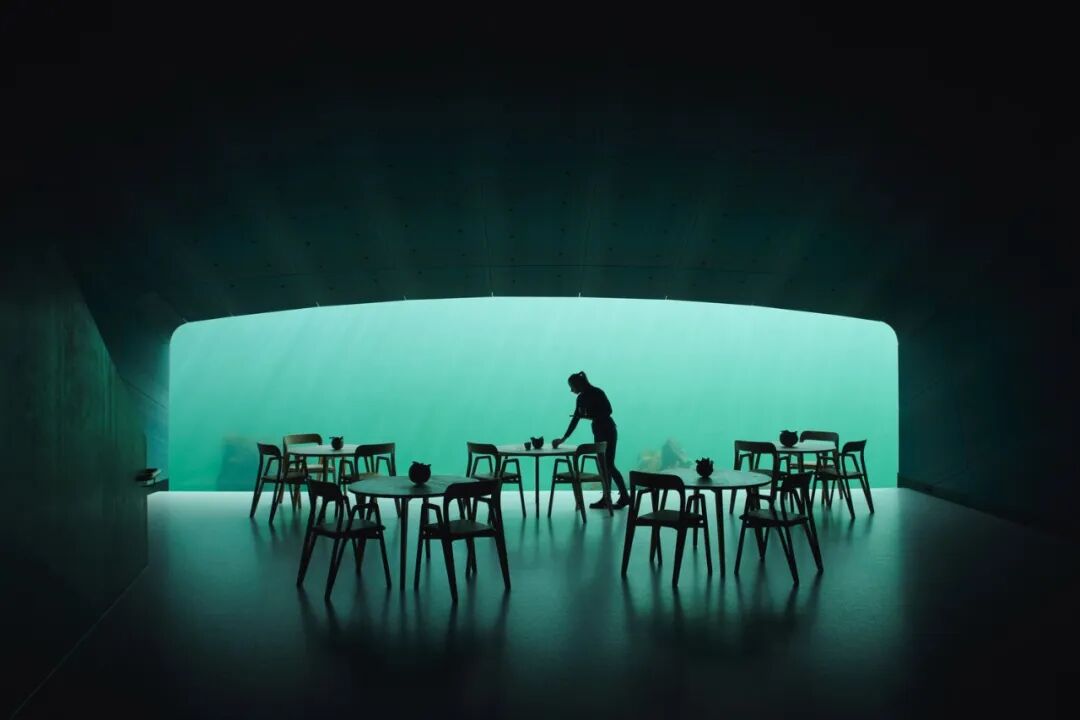 Snøhetta事务所在2019年设计了这座欧洲首家水下餐厅,虽然已经过了三年之久,但是由于建筑独特的构造和设计理念,使得这家餐厅在各个领域都广受好评,热度不减,该项目表达建筑师对陆地与海洋之间微妙的生态平衡的关注,并提醒人们以可持续的方式进行负责任消费。