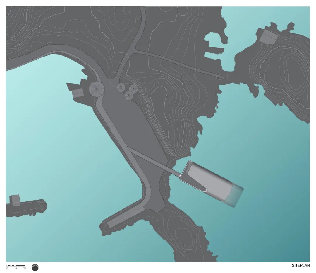Knubben建筑灵感来自于小岛的形状,它是一块冰河世纪形成的石头,仿佛沿着挪威海岸急速前进。小岛特点是形状磨损严重,软的凹凸纹理中形成了空洞。为了尽可能准确地表达地形,该外立面将由沿着地图等高线的水平线表达。