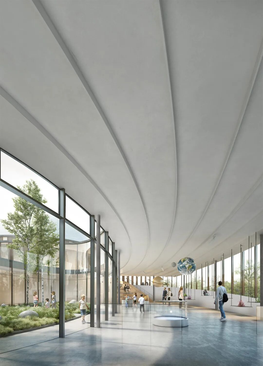 杜伊斯天文馆和天文台的目标是在一个非凡的地点创造一个新的独特的文化目的地,灵感来自恒星和邻近的斯卡普河的椭圆、流动和连续运动。通过创建一个统一的建筑,天文台和天文馆的圆顶紧密相连,该项目无论是近距离体验还是从图尔奈街(Rue du Tournai road)远处观看,都具有清晰可辨的概念。