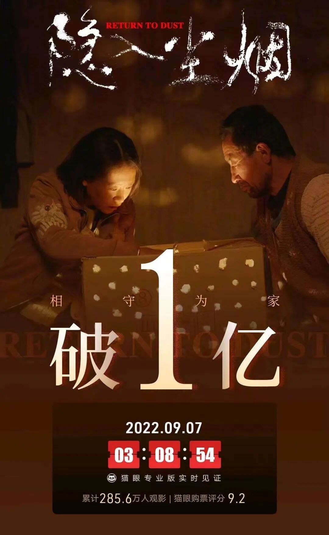 2022年7月8日,一部农村文艺片《隐入尘烟》低调上映了,首日票房仅有34.9万元。9月1日,《隐入尘烟》单日票房超过了670万元,是首日的近20倍,截止9月7日票房已突破1亿。