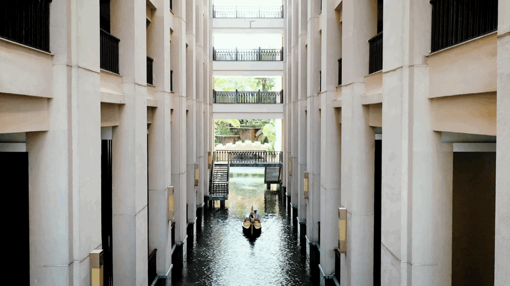 想象一座威尼斯水城出现在黄金海岸,乘一叶轻舟划过水面,从“深壑幽谷”般的客房楼宇中穿行而过……