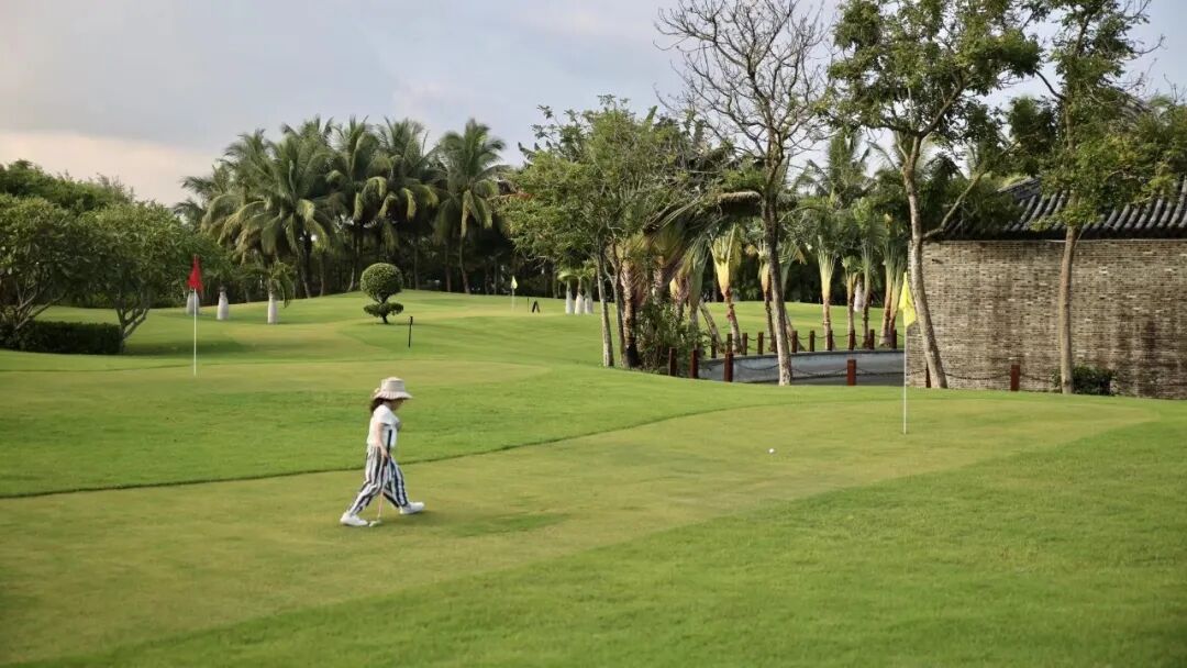 一马平川的开阔绿地被修剪成绝佳的高尔夫球场,草坪是真的漂亮;私域海滩对面是冲浪天堂蜈支洲岛,这片岛屿因浪程及频率优越,在近些年异常火爆,冲浪、帆船等水上项目也叫人应接不暇。