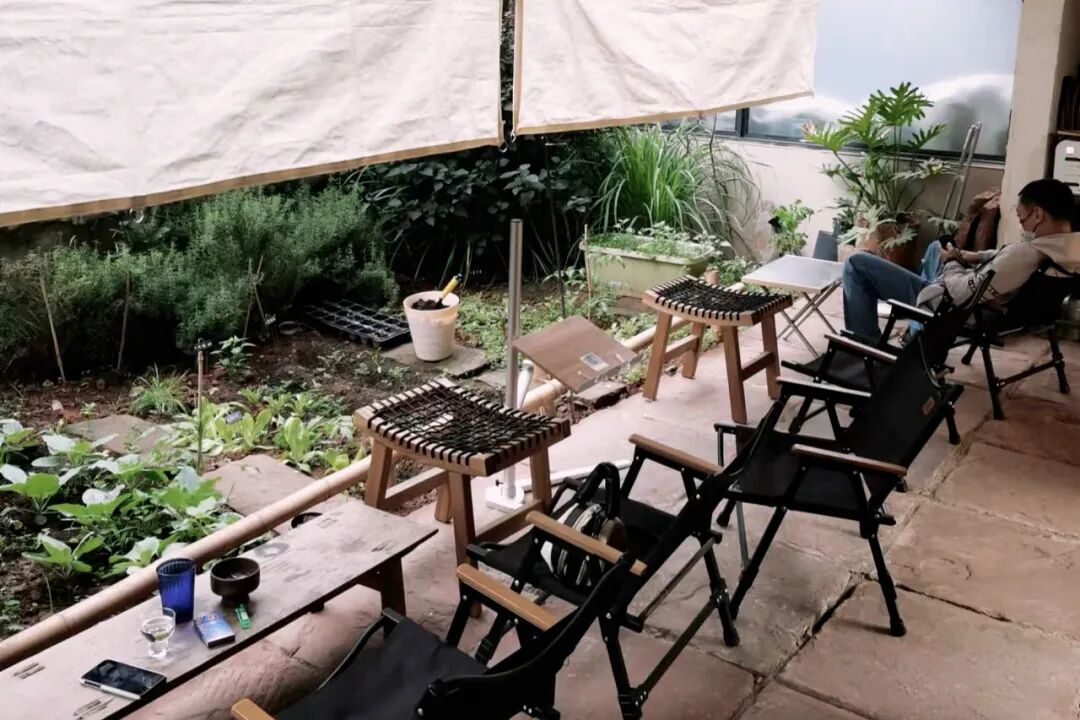 “不像个书店,谁家书店门口种菜啊?”再书房不仅种菜,还种树。樱桃树、银叶金合欢树在门口两侧招展,紫苏、薄荷、迷迭香沁人心脾......进入秋季,蔬菜换种一茬,院子里绿意盎然。