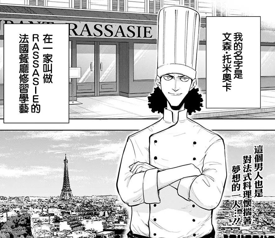 漫画开头,介绍了一位怀揣着开店梦想来到法国餐厅学习制作美食技巧的厨师文森.托米奥卡。