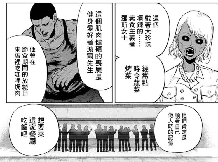 结果很成功,丧尸绕过他们,纷纷去吃桌上的料理,变回了人。