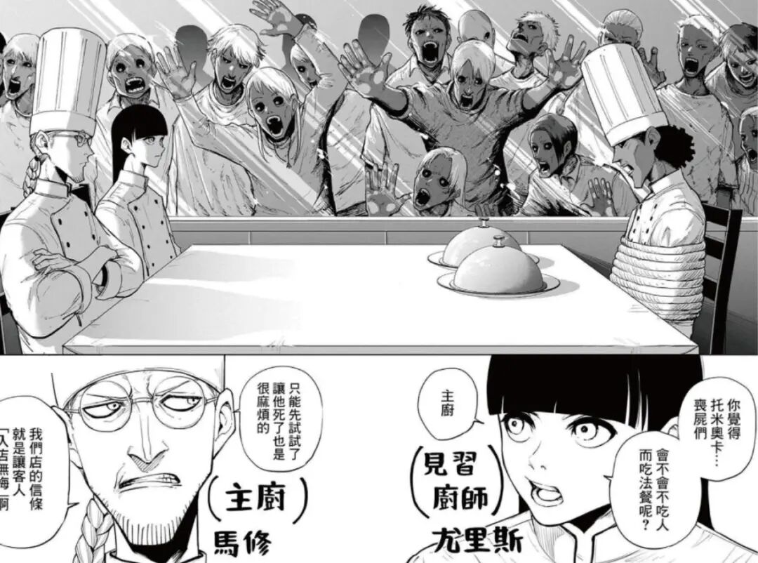 马修相信着他,一方面文森.托米奥卡先选择了尤里斯的料理,另一方面年幼翻垃圾桶捡拾的尤里斯体会过类同丧尸的极度饥饿。