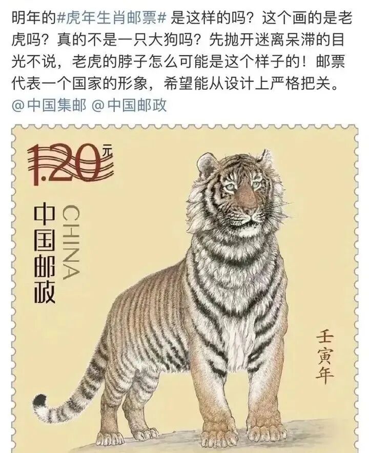 但他们忘记了去年虎年邮票刚出来的光景,老虎也被群嘲眉头紧锁,看起来病恹恹。