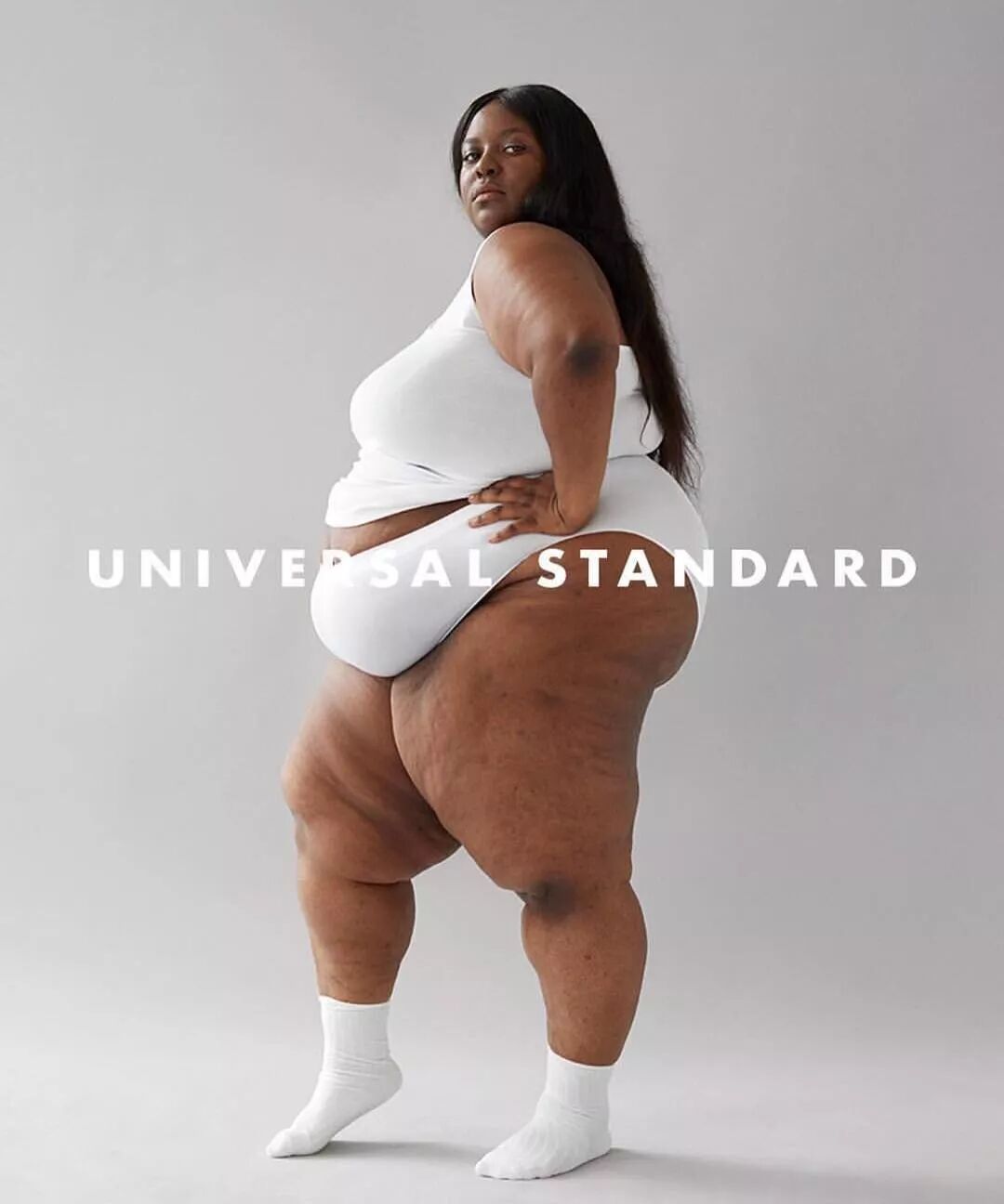 大码品牌Universal Standard也曾邀请前文提到的La’Shaunae作为品牌大片的模特出镜。其品牌创始人Polina 和 Alex,想让任何身型的人都买到合适的衣服。