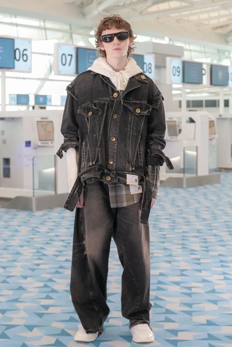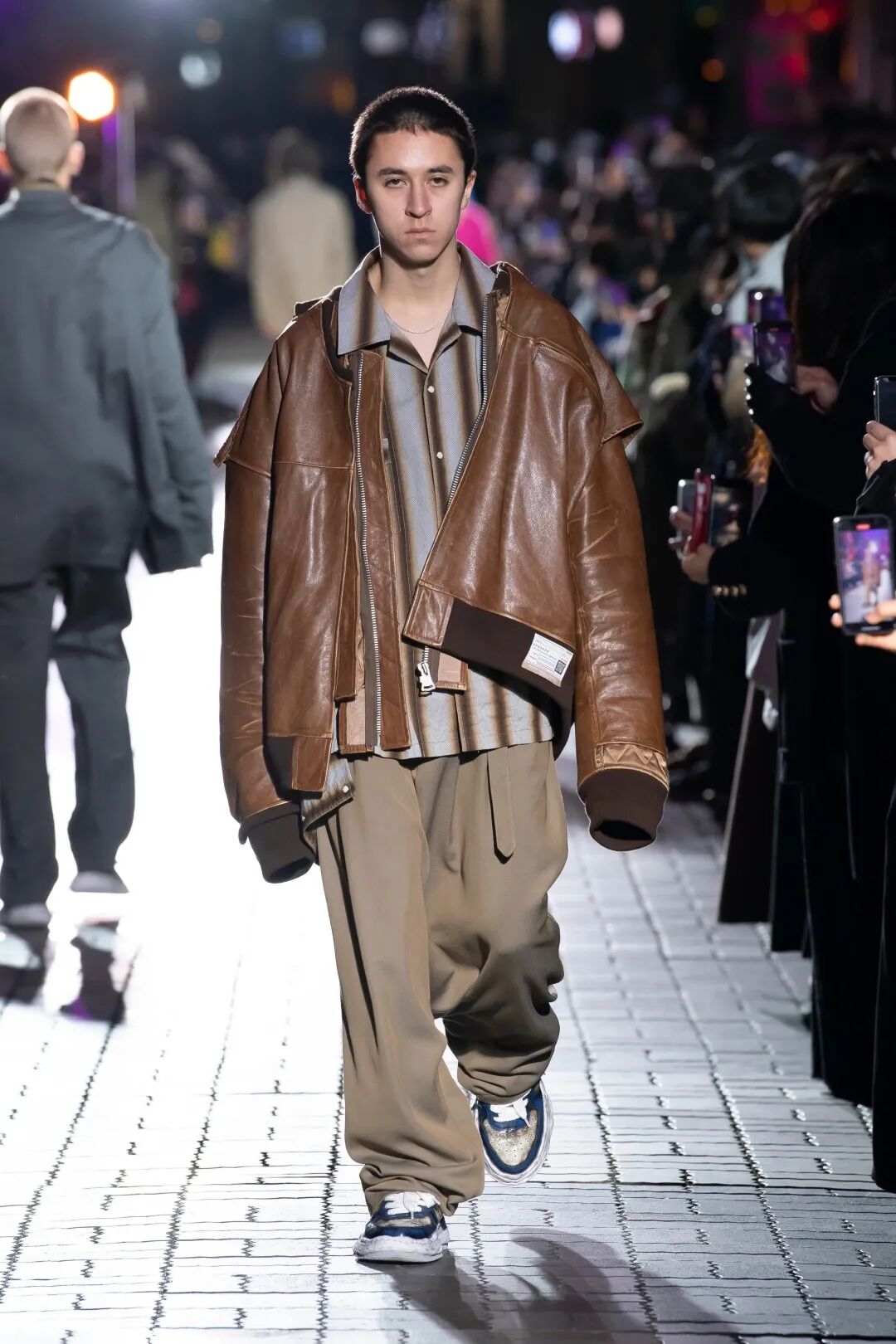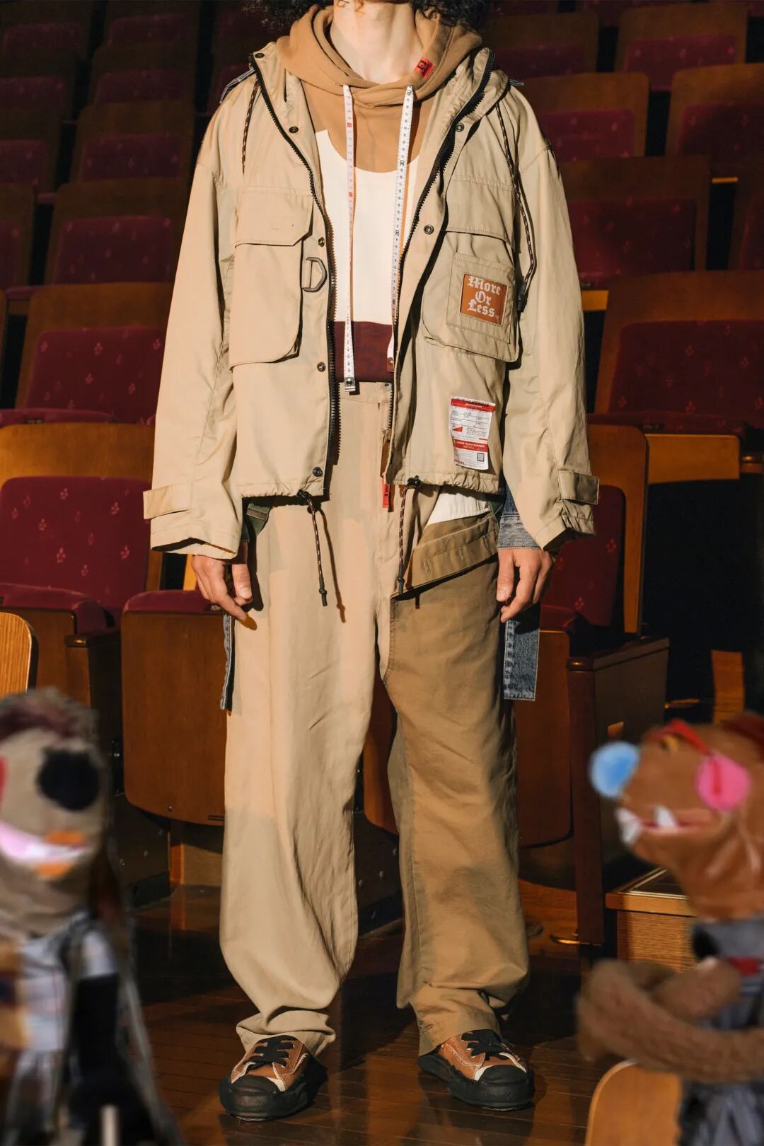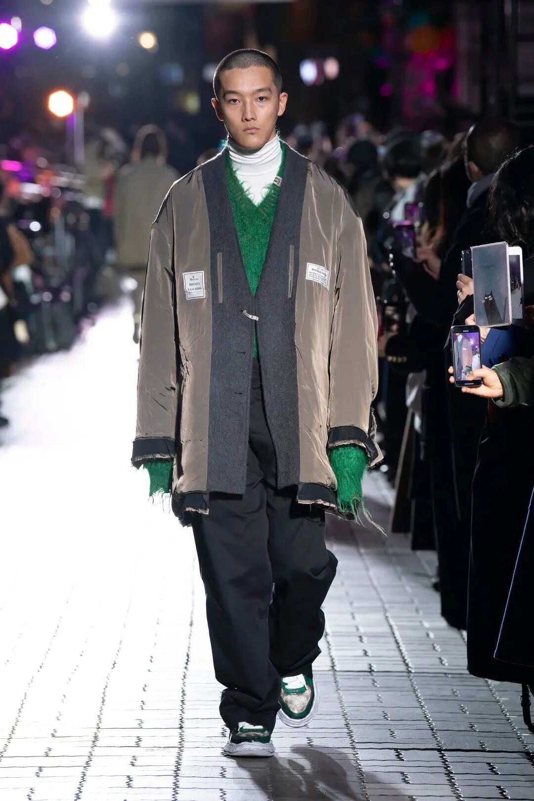 系列中,Mihara Yasuhiro将90年代的服装用大约25种复古风格重新诠释,称之为“新旧衣服”。男装方面,Mihara 展示了剪裁宽松的西装、超大号飞行员夹克和竖条纹衬衫。