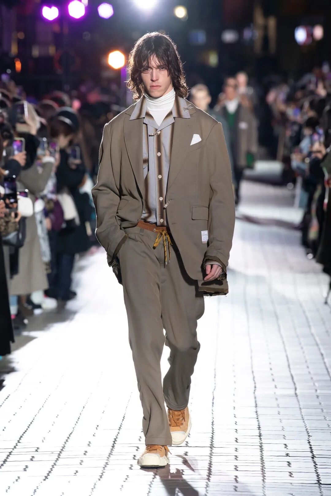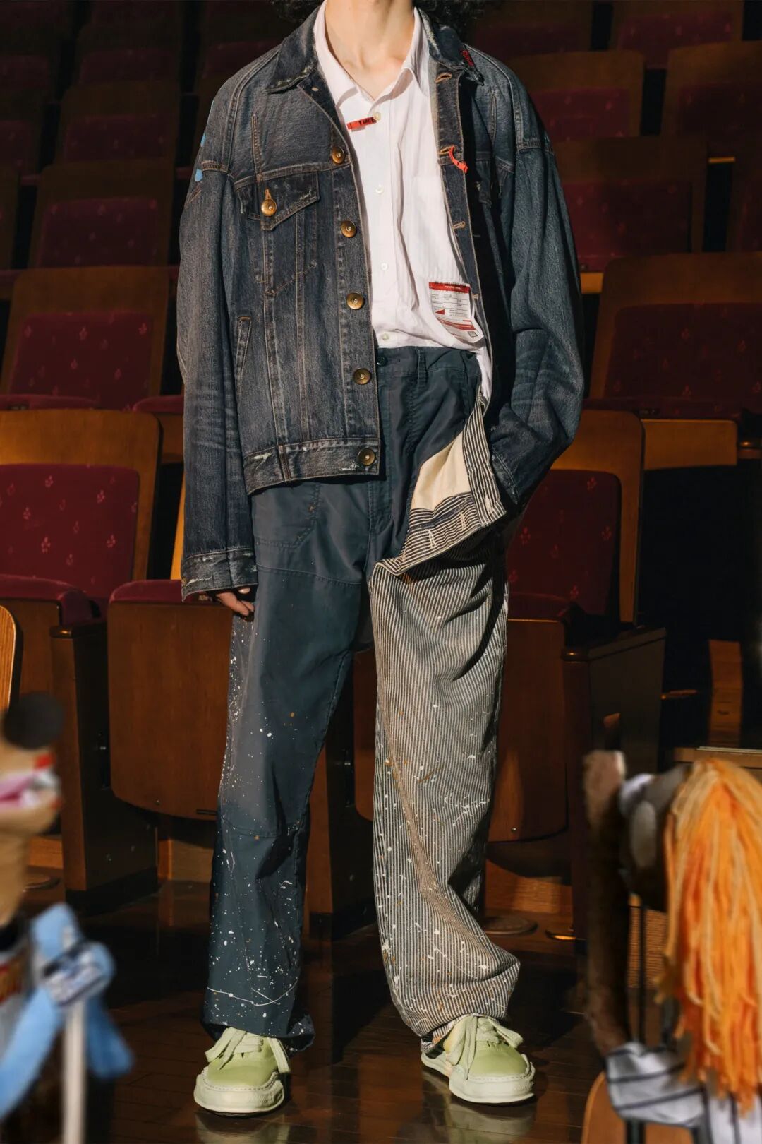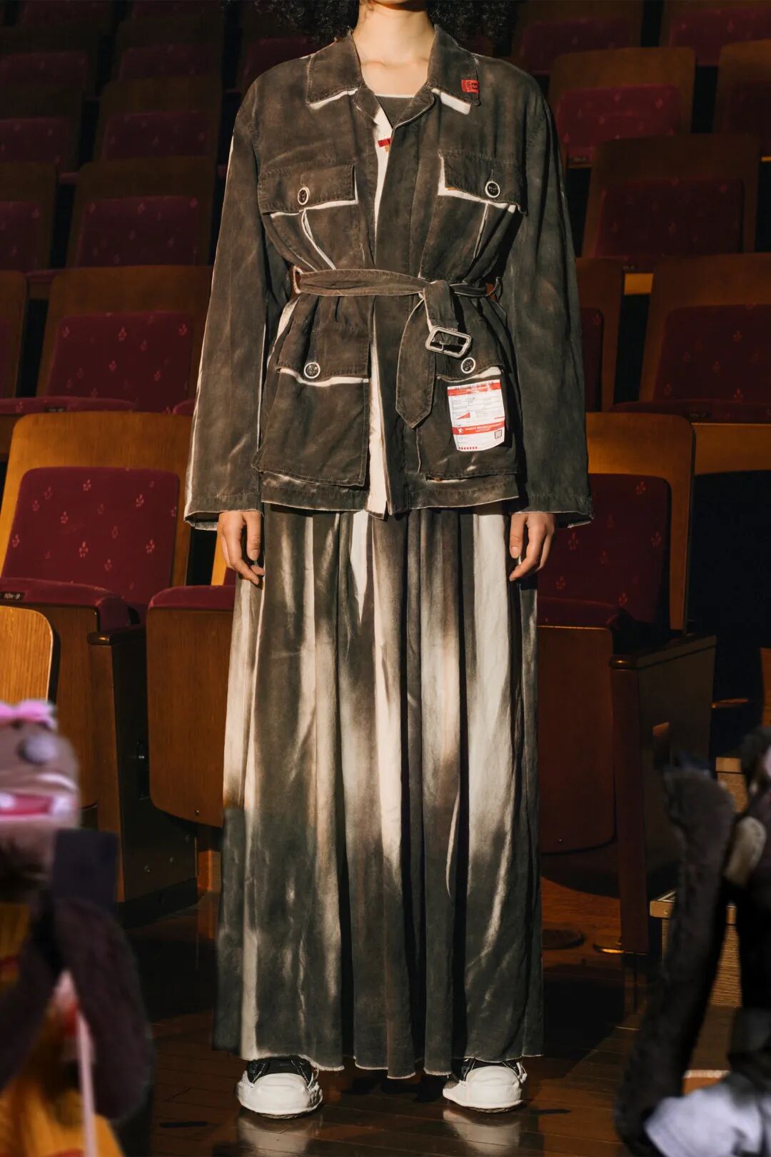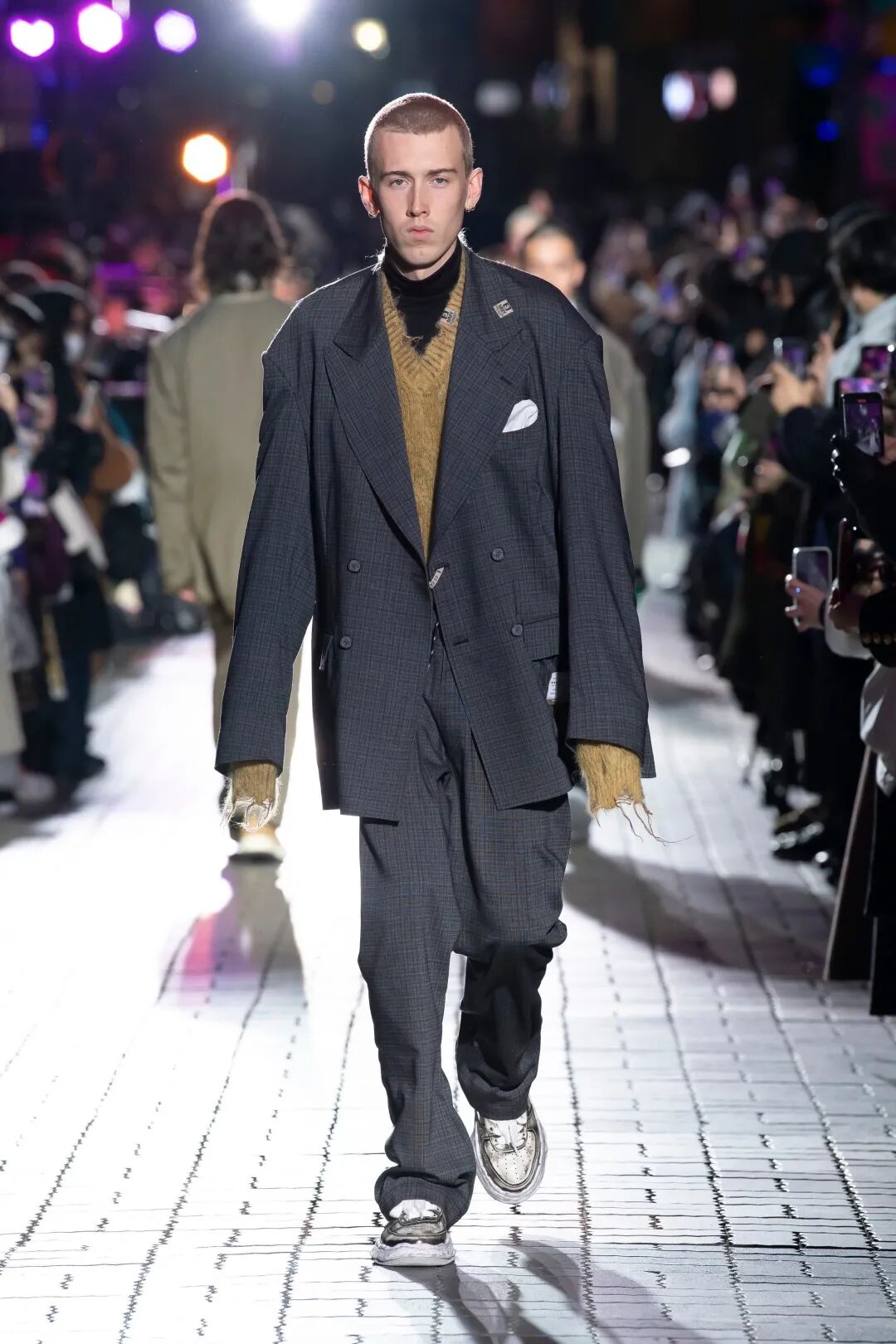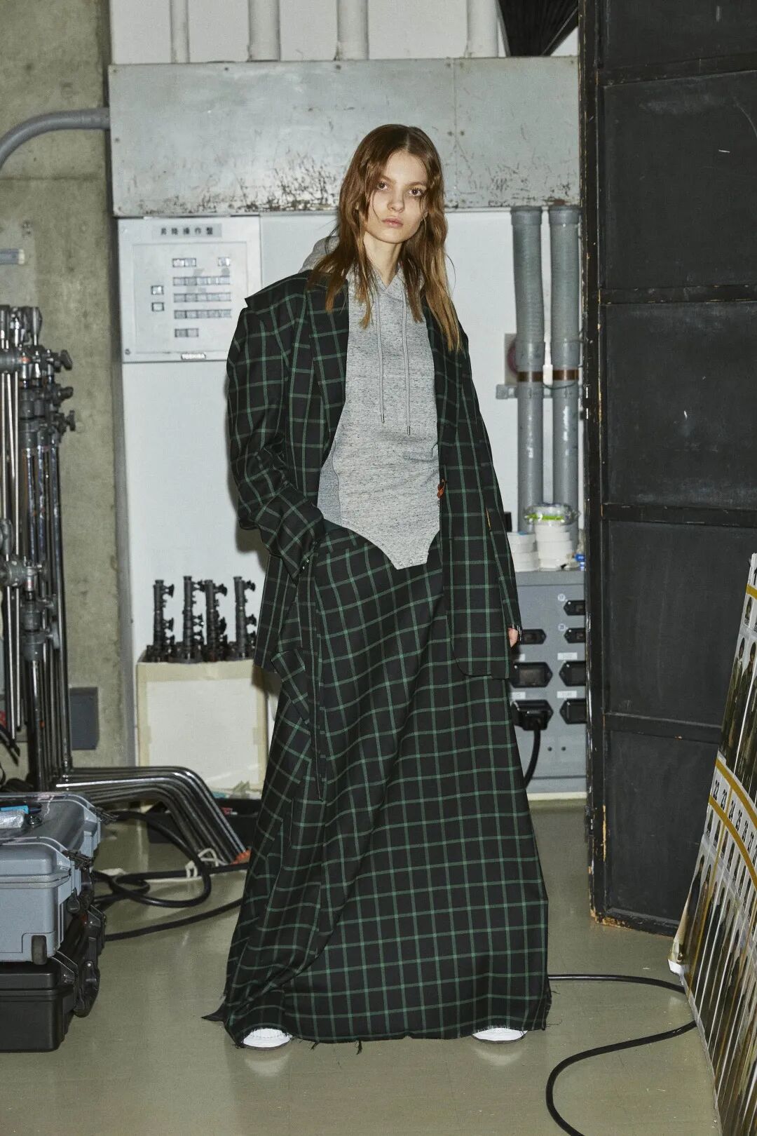系列中,Mihara Yasuhiro将90年代的服装用大约25种复古风格重新诠释,称之为“新旧衣服”。男装方面,Mihara 展示了剪裁宽松的西装、超大号飞行员夹克和竖条纹衬衫。