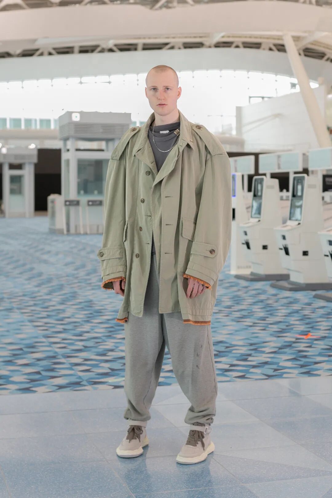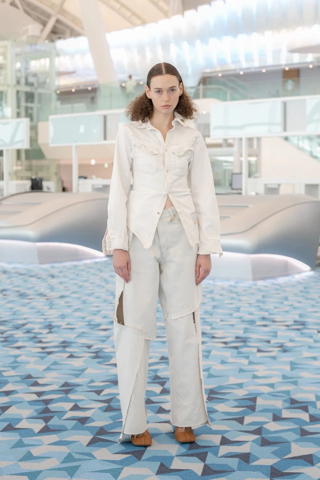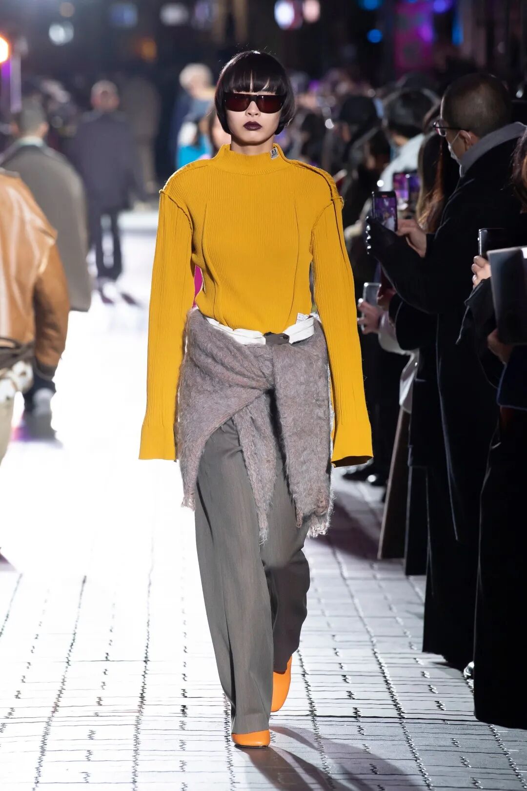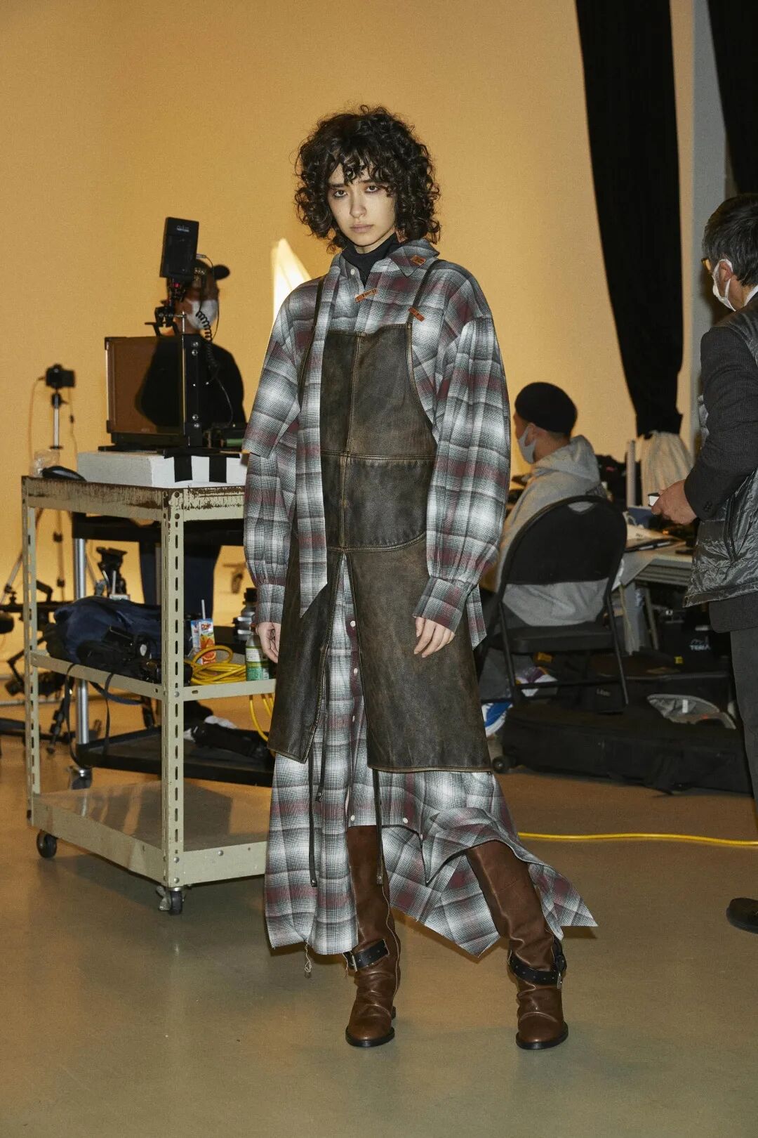 系列中,Mihara Yasuhiro将90年代的服装用大约25种复古风格重新诠释,称之为“新旧衣服”。男装方面,Mihara 展示了剪裁宽松的西装、超大号飞行员夹克和竖条纹衬衫。