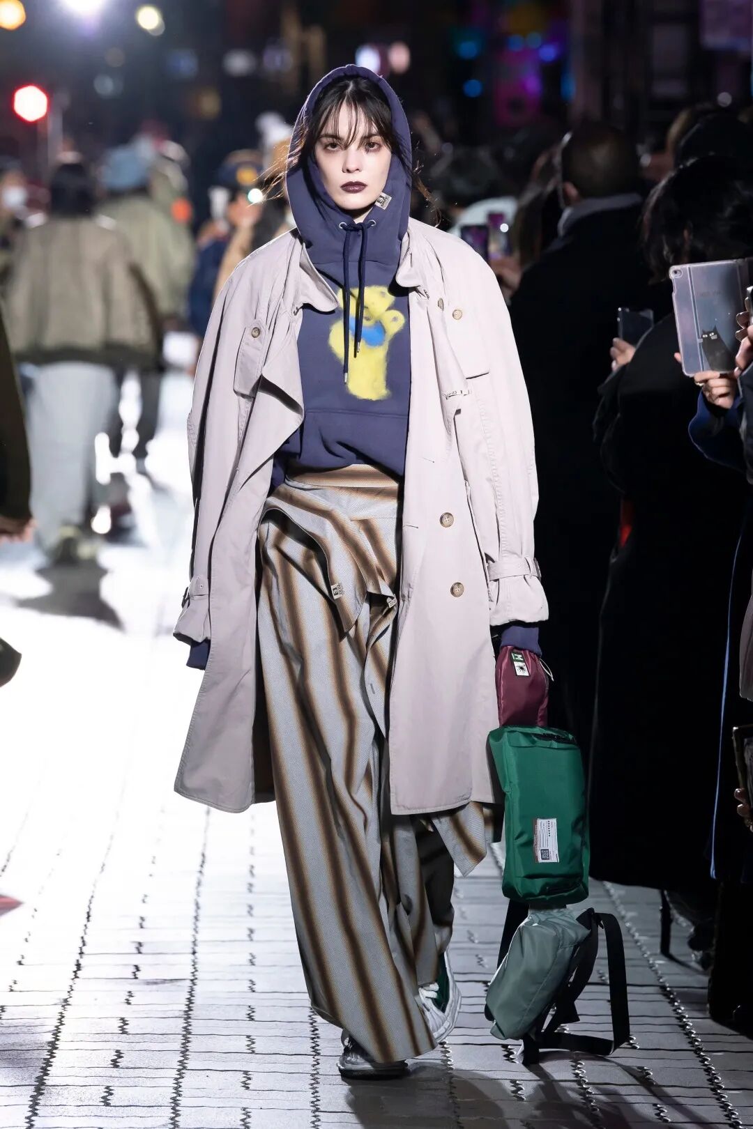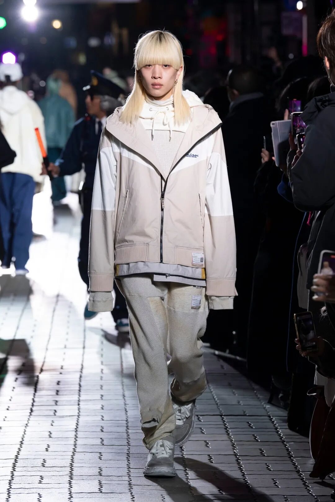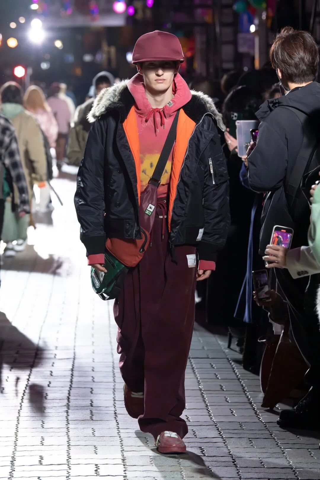 Mihara在东京历史悠久的购物廊中,营造了一种嘉年华般的氛围呈现他的最新系列。Mihara Yasuhiro受到了东京对Yankee和美国休闲装的影响,他在设计中寻找着热情与复古。