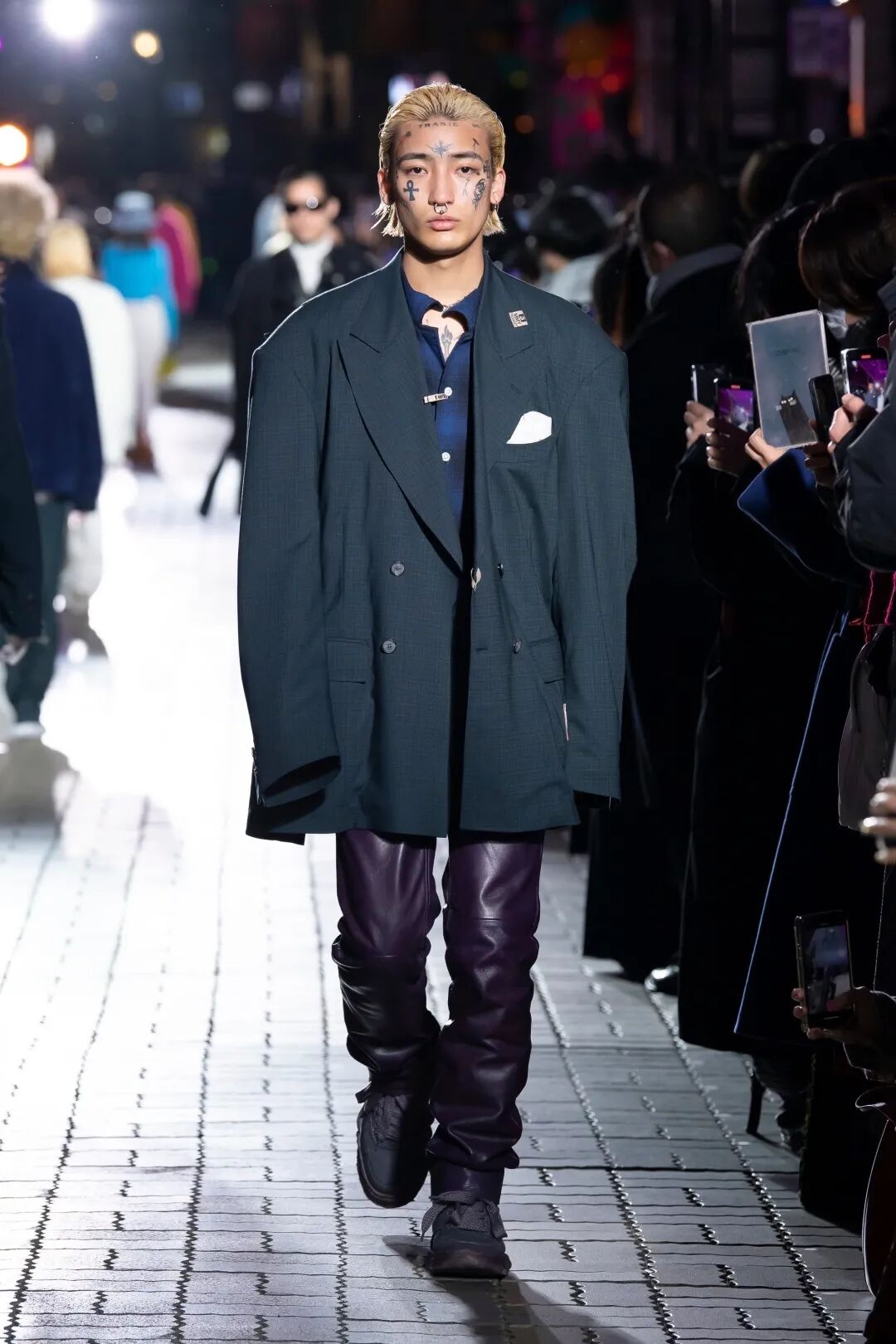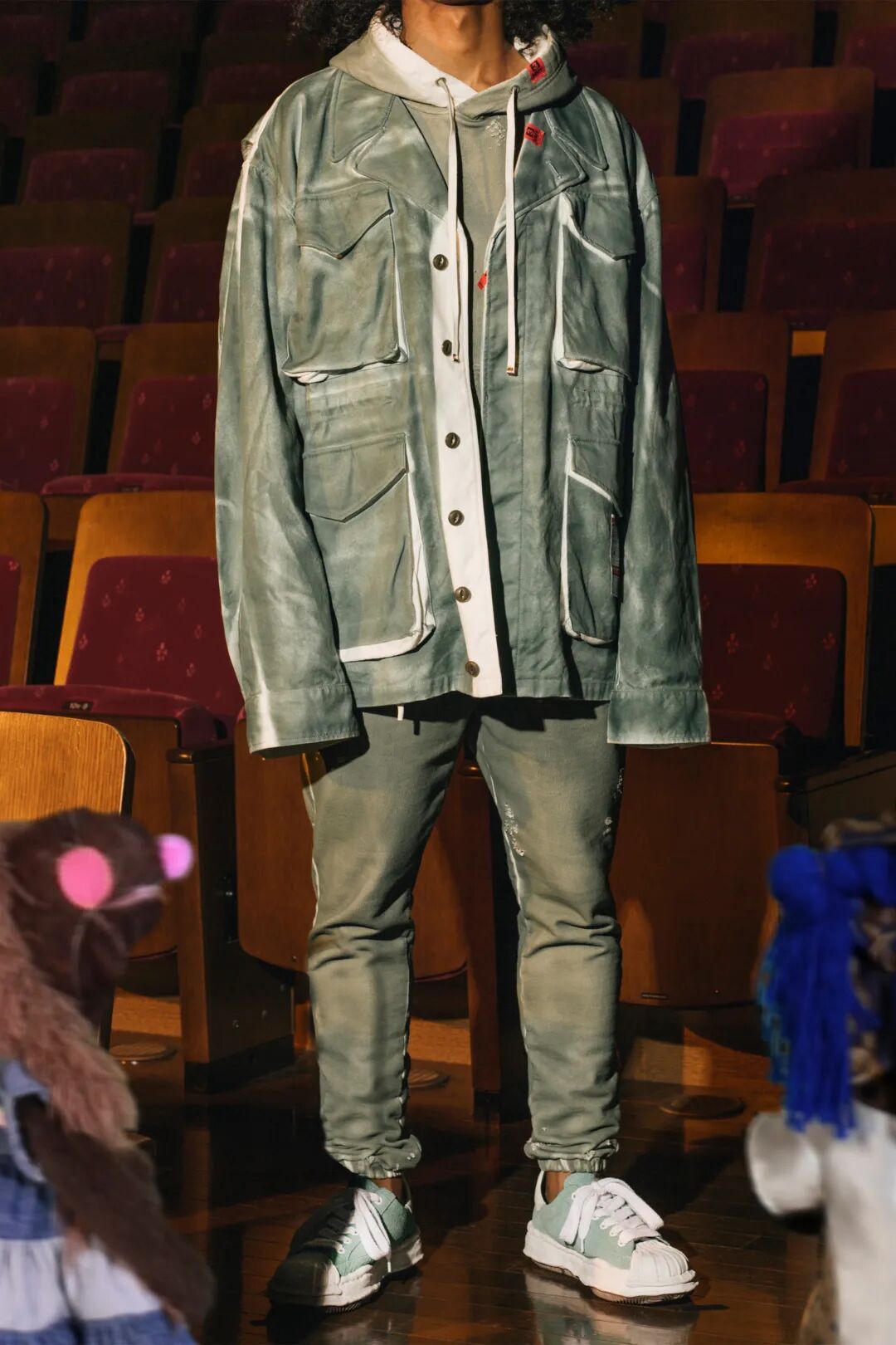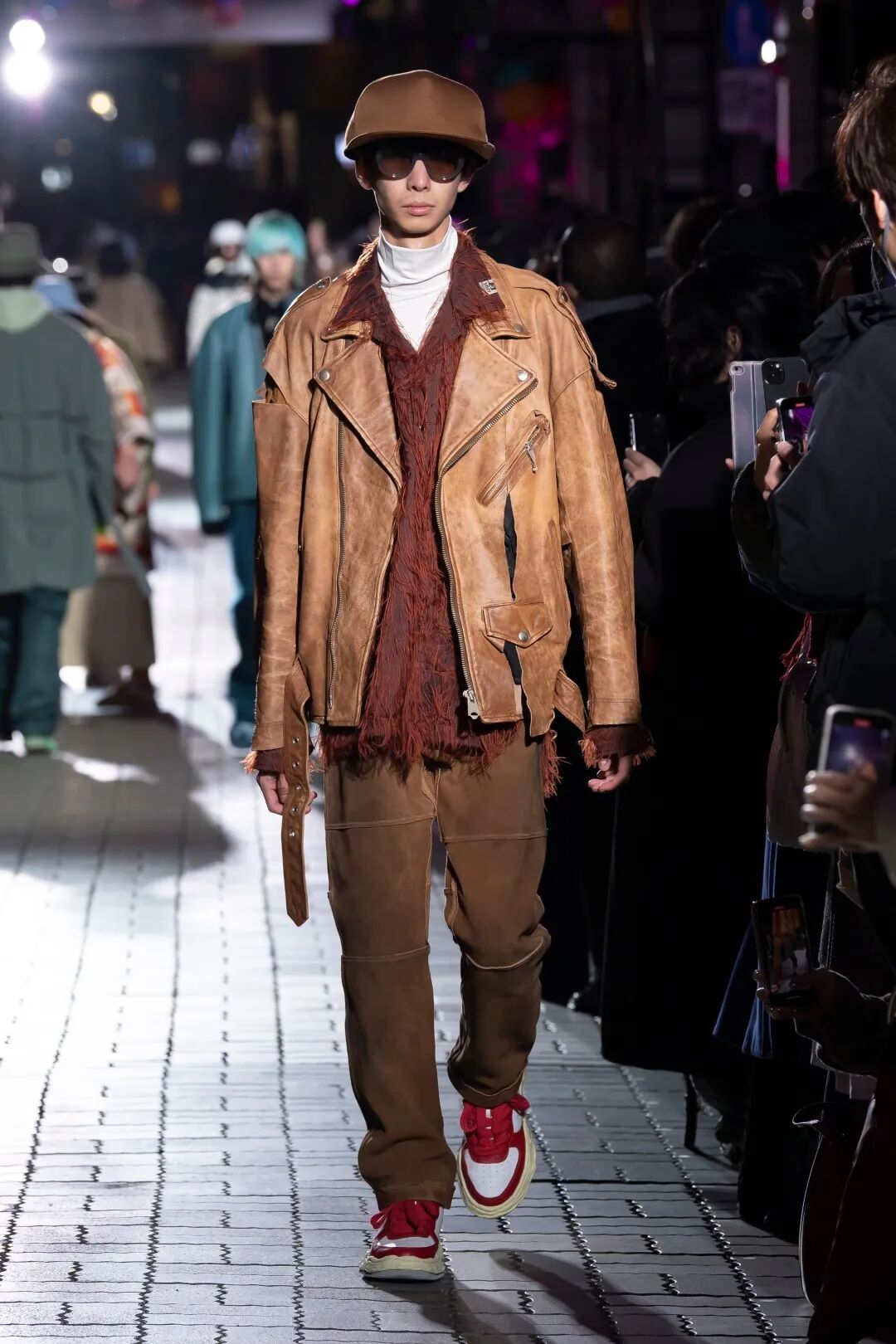Mihara在东京历史悠久的购物廊中,营造了一种嘉年华般的氛围呈现他的最新系列。Mihara Yasuhiro受到了东京对Yankee和美国休闲装的影响,他在设计中寻找着热情与复古。