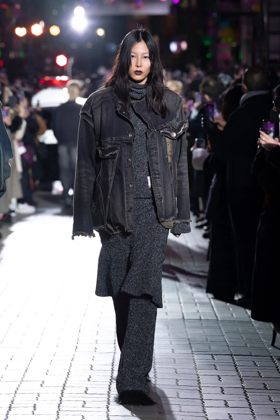女装系列包括紧身罗纹裤、色彩鲜艳的长针织裙和闪亮的上衣,其中宽松牛仔衣、毛茸茸的针织衫和垂褶风衣等大量服饰都是男女皆宜的。