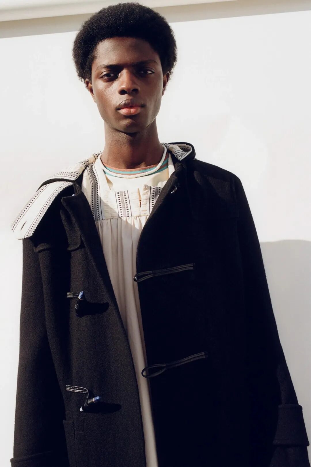 英国、牙买加混血姑娘 Grace Wales Bonner,2014年毕业于中央圣马丁时装设计本科专业,其设计融合黑人文化与性别微妙探索。随后在仅仅推出两个系列之时,就已然顶着诸如 Dazed 这样的知名媒体给予地“最具潜力设计师”的头衔,并且获得了2015年度 British Fashion Awards 最佳新晋男装设计师大奖。