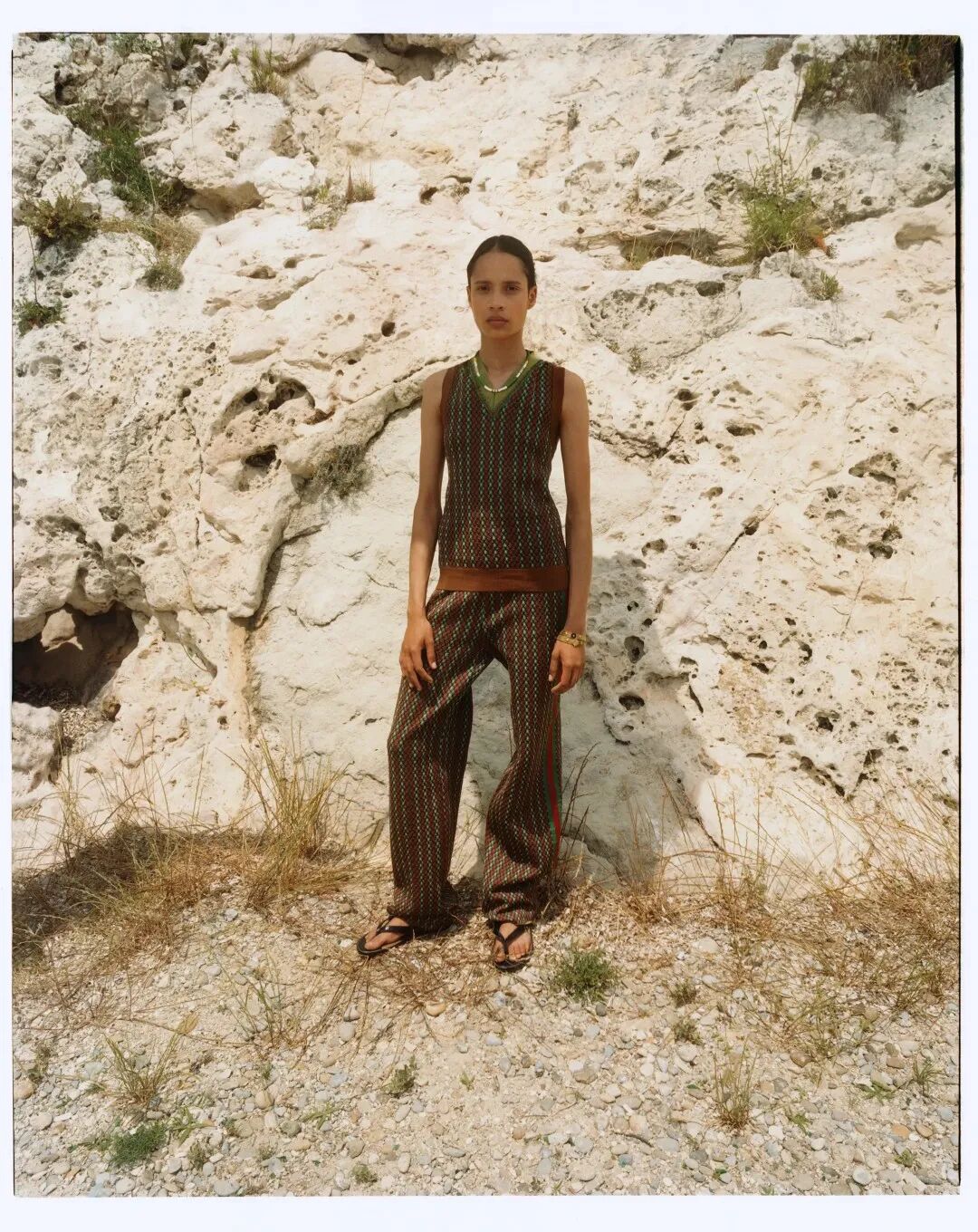 这是一个长期以来让这位设计师着迷的主题,他的品牌成立的目的是要打破奢侈品的视角,将其从通常单一的欧洲中心主义中重新定位。因此,像巴巴多斯人 Kamau Brathwaite 和圣卢西亚人 Derek Walcott 这样的诗人的出现不仅仅是审美性格研究。相反,他们是考虑后殖民运动的催化剂,探索“在另一个地方,或来自另一个地方是什么”。