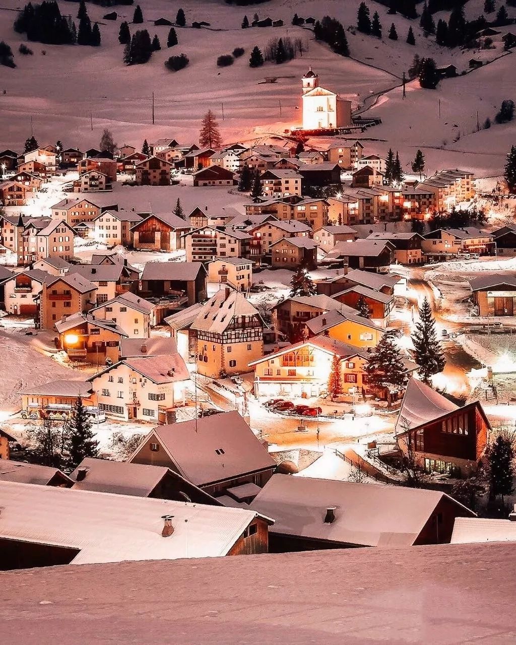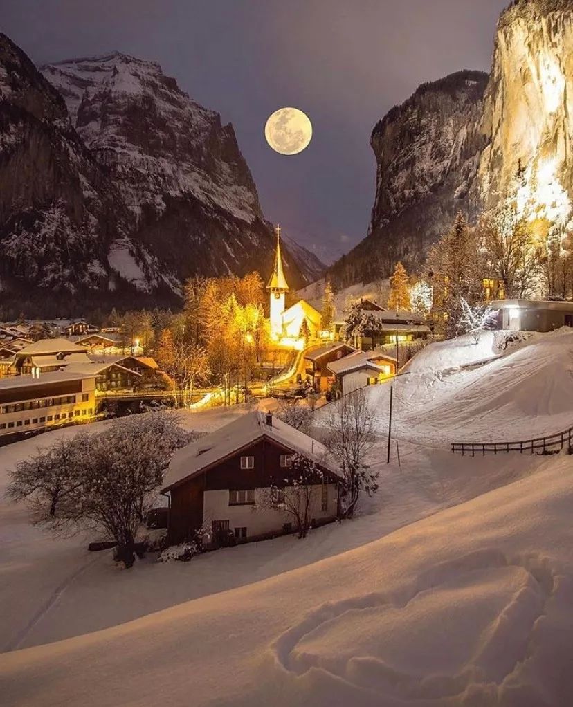 照片中的瑞士被白雪覆盖