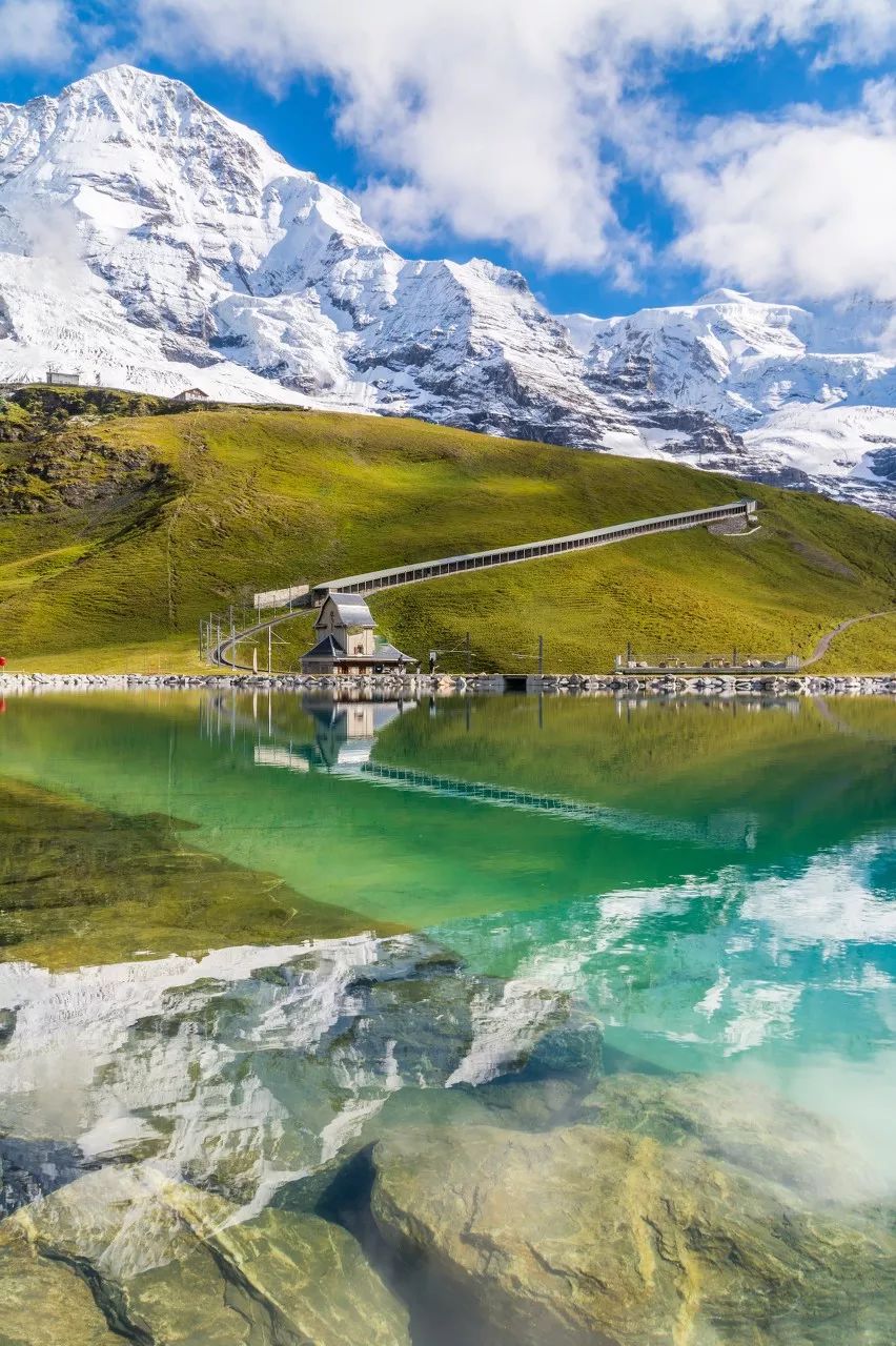 在一片名为Hohematte的宽广绿地上,可以清楚的远望美丽的少女峰身影,不论你何时从这片绿地擦身而过,都可以随时与少女峰的美丽相遇。
