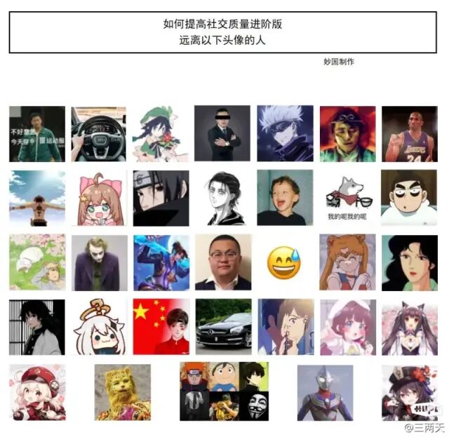 前段时间,一条“如何提高社交质量:远离以下头像的人”的微博突然火了。