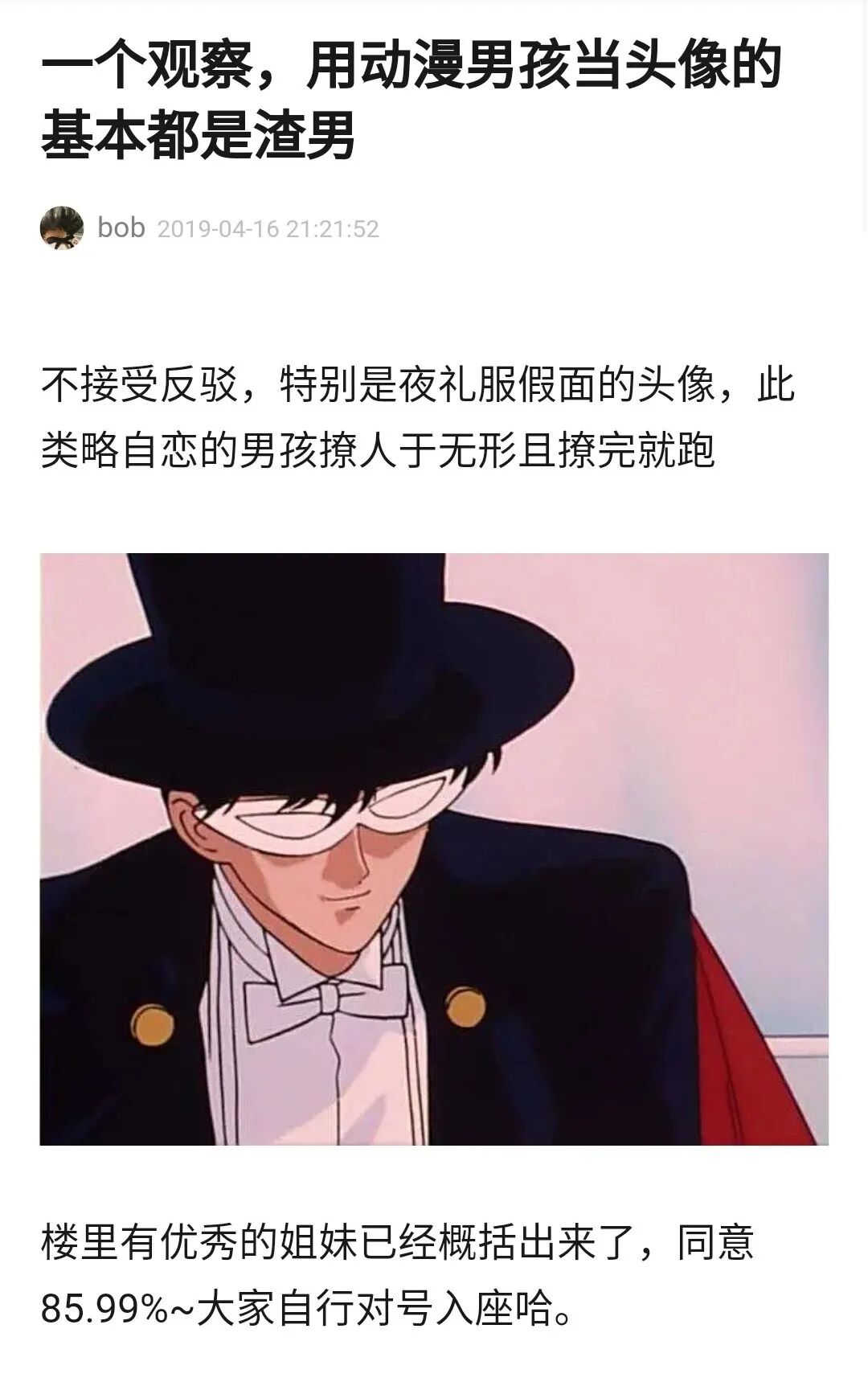 但类似“用动漫男孩当头像的基本都是渣男”的说法,却完全不像是空口胡说。
