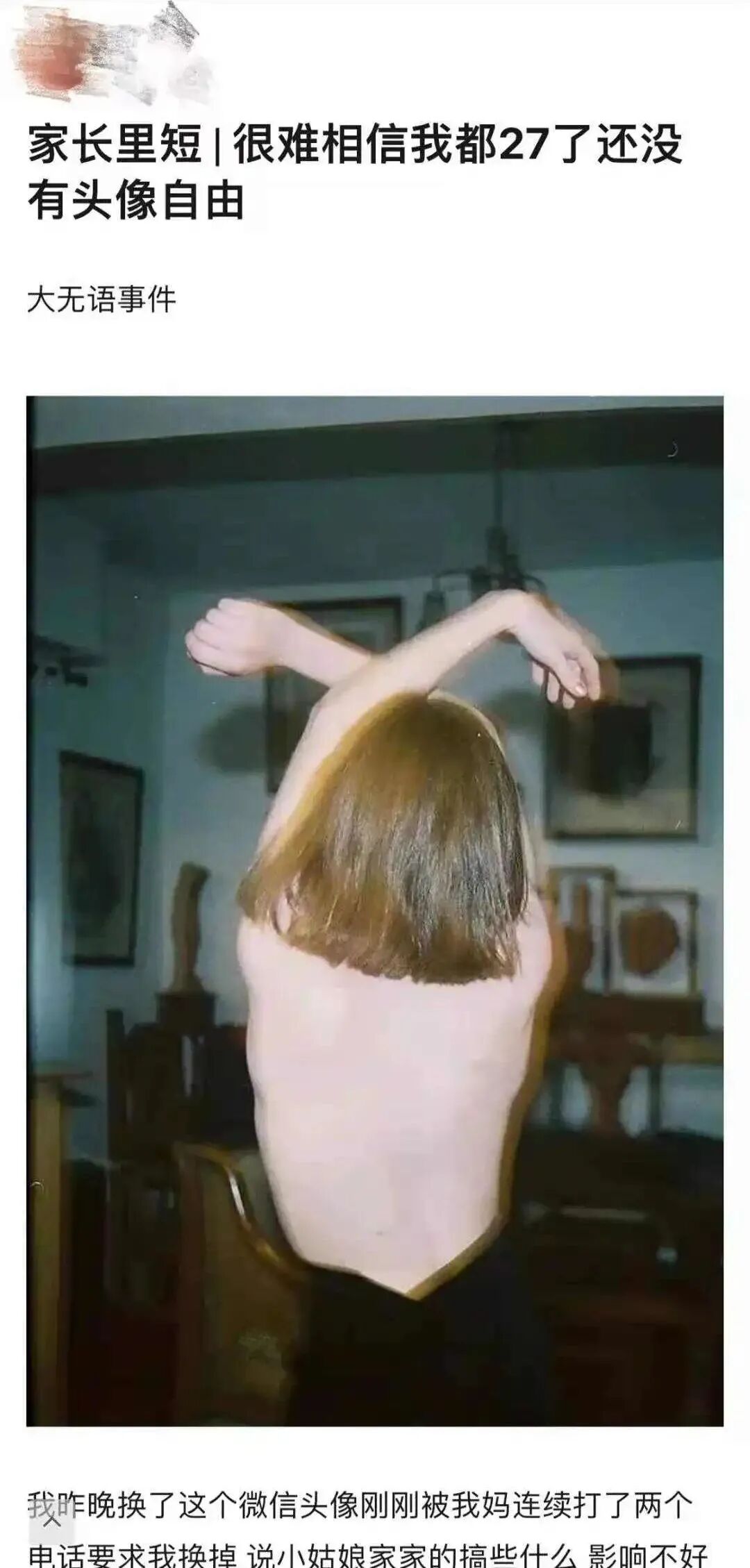 微博上一网友发文抱怨,称自己都27岁了,父母还是会干涉自己的头像选择。