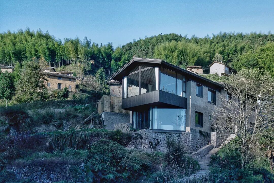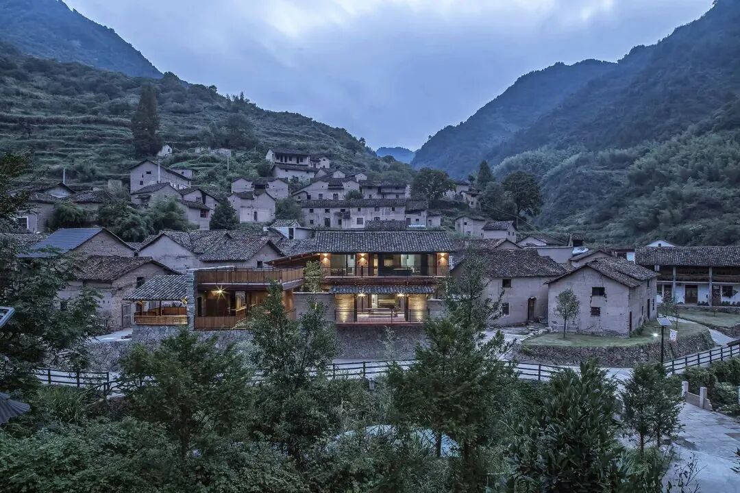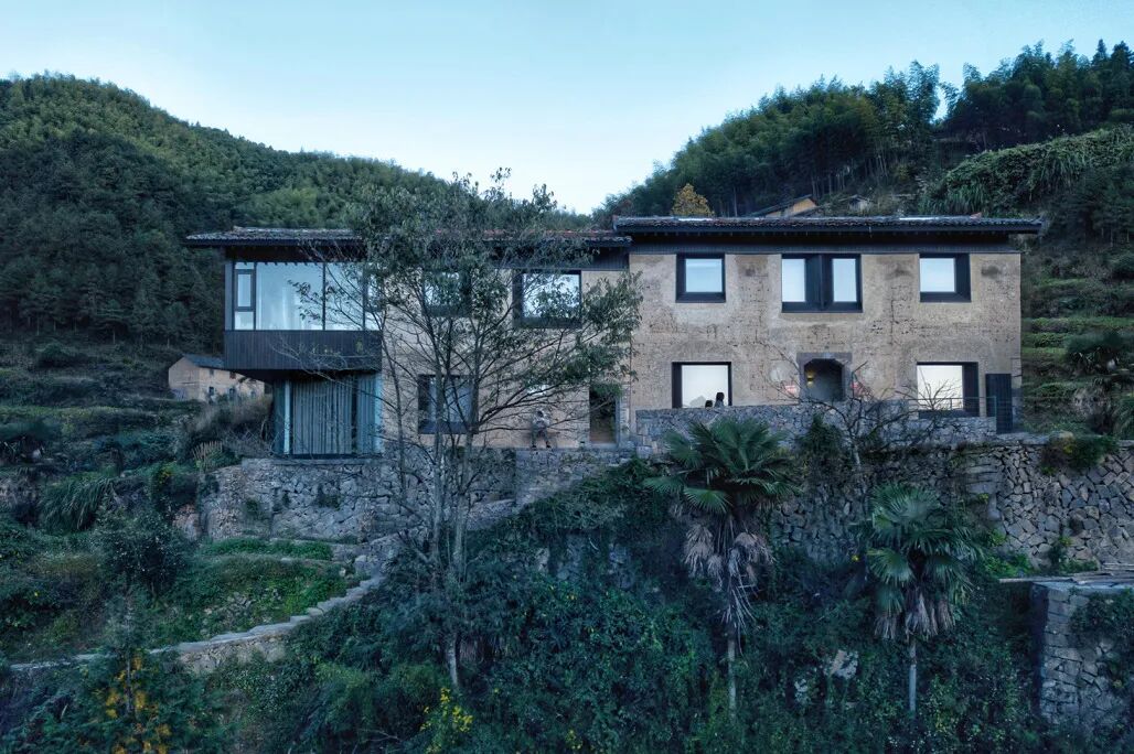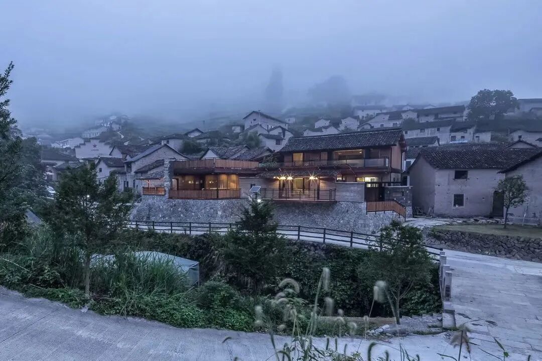 这个民宿位于浙江松阳陈家铺村。陈家铺村依山而建,整体呈现出典型浙西南崖居聚落形态。近百幢民居多为夯土木构建筑,保留了完整的村落空间肌理和环境风貌。