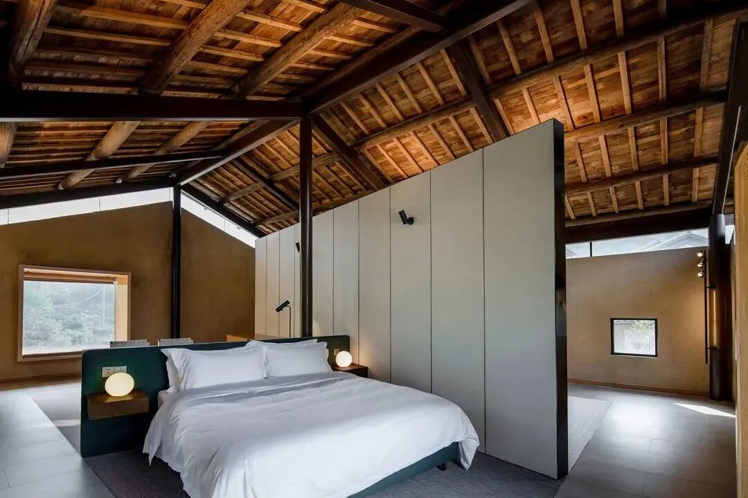 这个项目位于浙江桐庐青龙坞的山林深处,它由一座木骨泥墙的老宅改造而来,内部包括一个可容纳20人的胶囊旅社、一个乡村社区书店和阅览室。