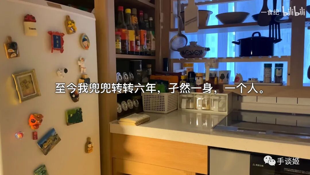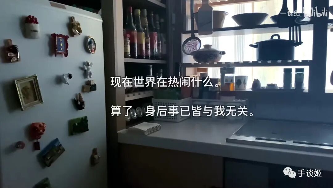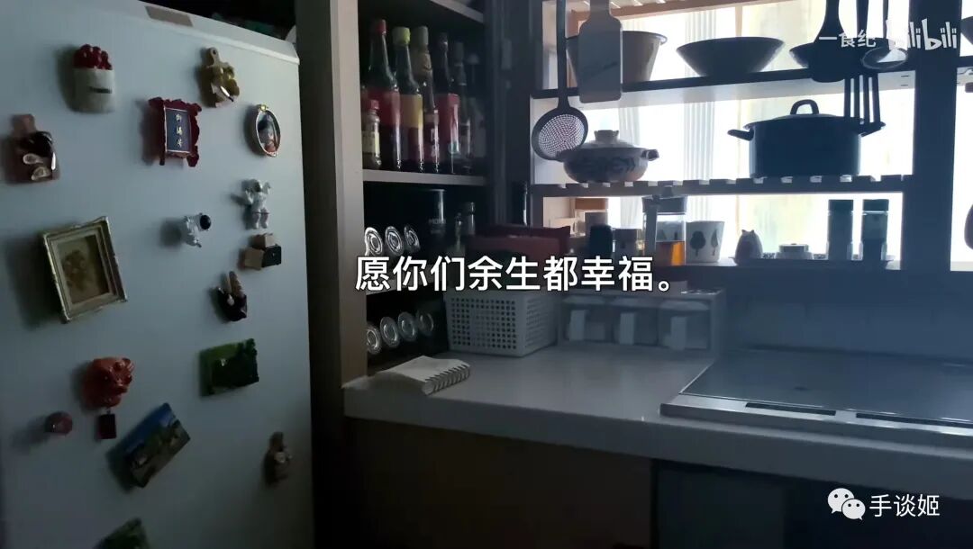 然而,视频里却没有出现往日温馨光照下的美食,只有冰冰冷冷的厨房。