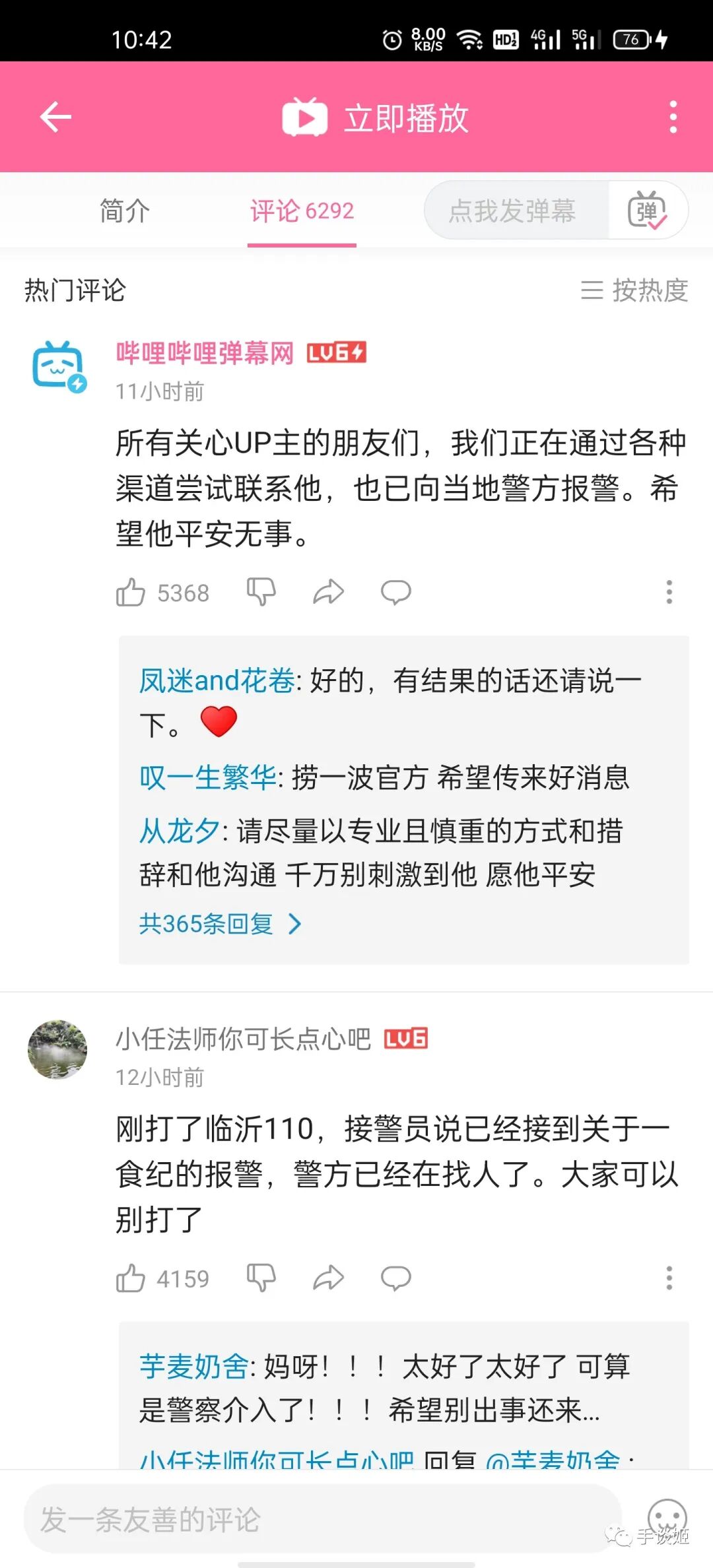 评论区和姬有着同样想法的网友非常多,粉丝们在视频发出之际便早早向临沂警方报警,B站官方也在视频发出后不久赶来。