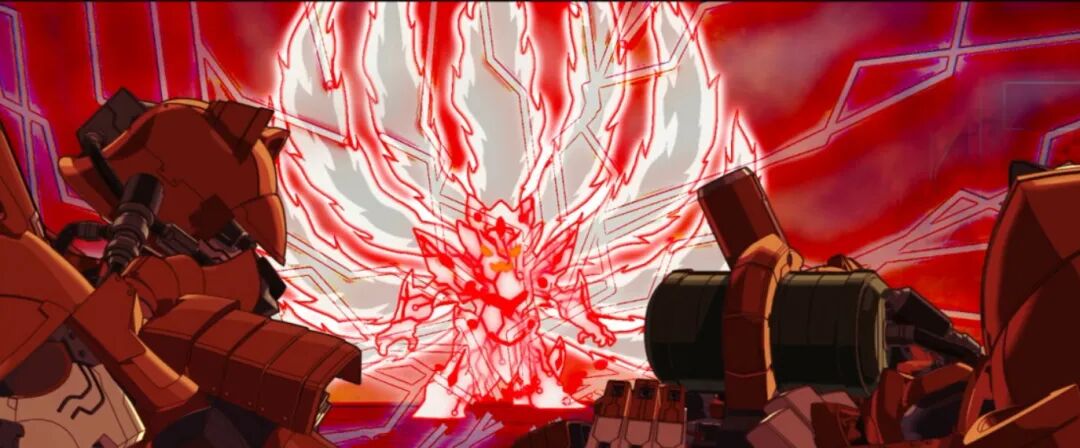 他们的勇气源自于一层虚拟形象的外壳——司令官坐在机甲中,以高达形态出击,所以才能毫无惧色地面对潮水般涌来的敌人。
