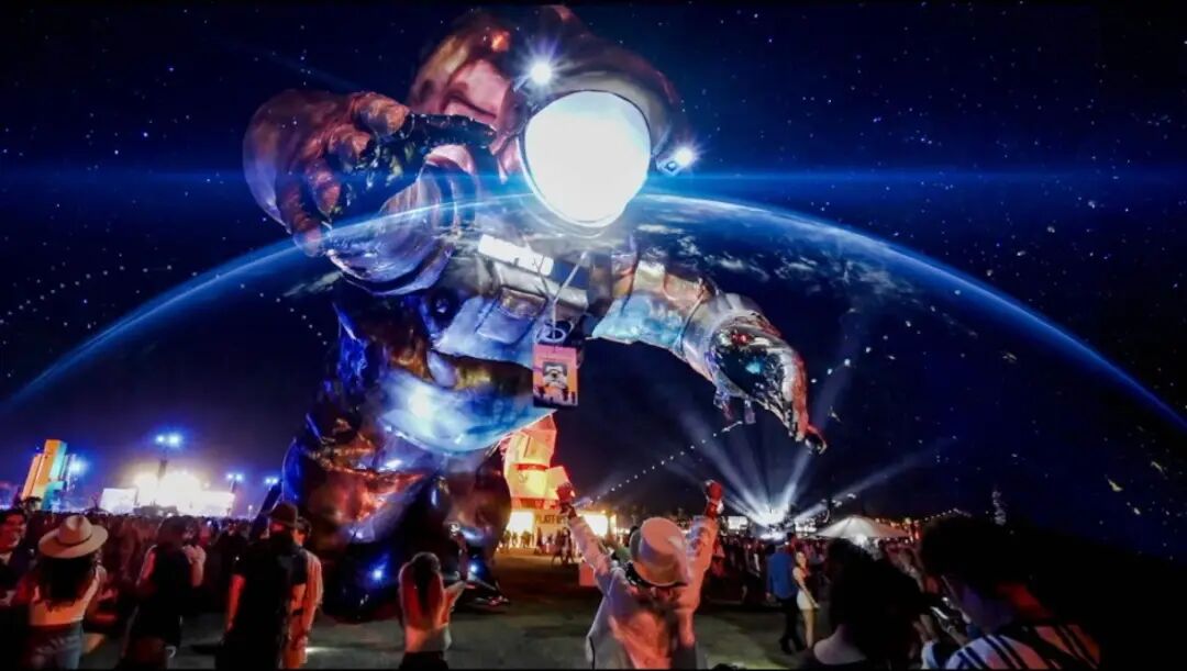 自从“宇航员”在2014年科切拉音乐节上首次亮相以来,这个充满活力的“宇航员”成为了音乐节上被拍摄最多的装置,这个巨大的探险家一直在探索银河系。今年,这位深受粉丝喜爱的“宇航员”又回来了,他从内到外都焕然一新,肩负着科切拉音乐节的重要使命,被称为“概观效应”。