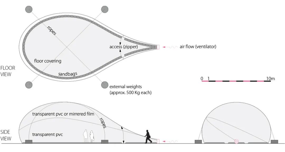 LOUD SHADOWS是Kate Moore、The Stolz、LeineRoebana和Plastique Fantastique的联合项目,这个项目是由来自不同背景的艺术家制作的拼贴画:舞蹈、音乐、建筑。Plastique Fantastique的建筑是不朽的,但流动性强,柔软而透明,它的表皮对环境的影响与它的内部空间向外提供的清晰视野相辅相成。