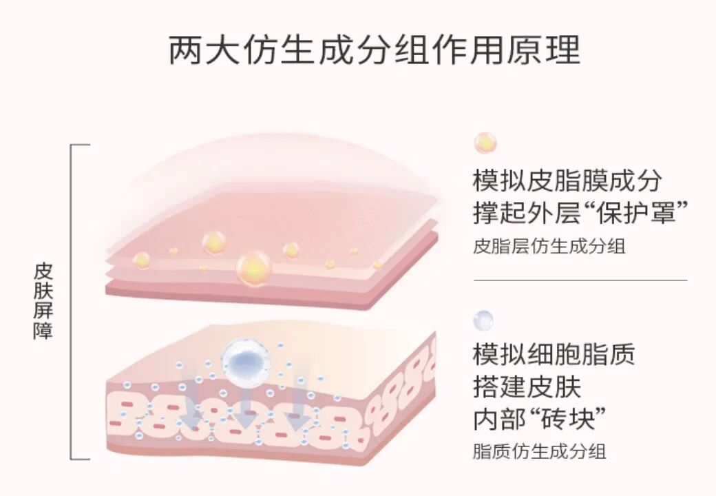外层皮脂和内层细胞间脂质是人体皮肤屏障的主要组成部分。PMPM「粉盾油霜」延续了PMPM「内外源双通路」的配方思路,两大仿生成分组添加,模拟健康肌肤的天然构成,从而实现内外源深修护的功效。