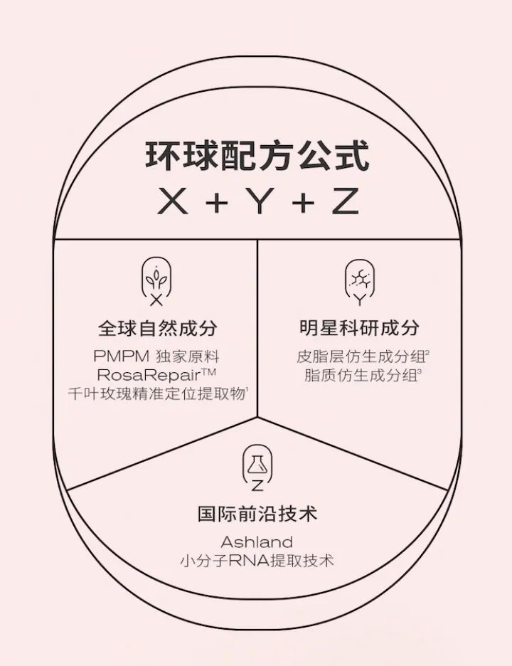 从内源通路上,PMPM联合全球TOP 10原料供应商亚什兰共同研发的独家成分RosaRepair™千叶玫瑰精准定位提取物,复配向日葵籽油不皂化物、白池花籽油和类神经酰胺等成分构成的「脂质仿生成分组」,有效修护受损细胞、提升肌肤自愈力;「皮脂层仿生成分组」内含半角鲨烷、霍霍巴籽油、欧洲越桔籽油和辛酸/癸酸甘油三酯等成分协同,从外源模拟皮脂成分形成锁水膜,保湿舒缓的同时强韧肌肤屏障。