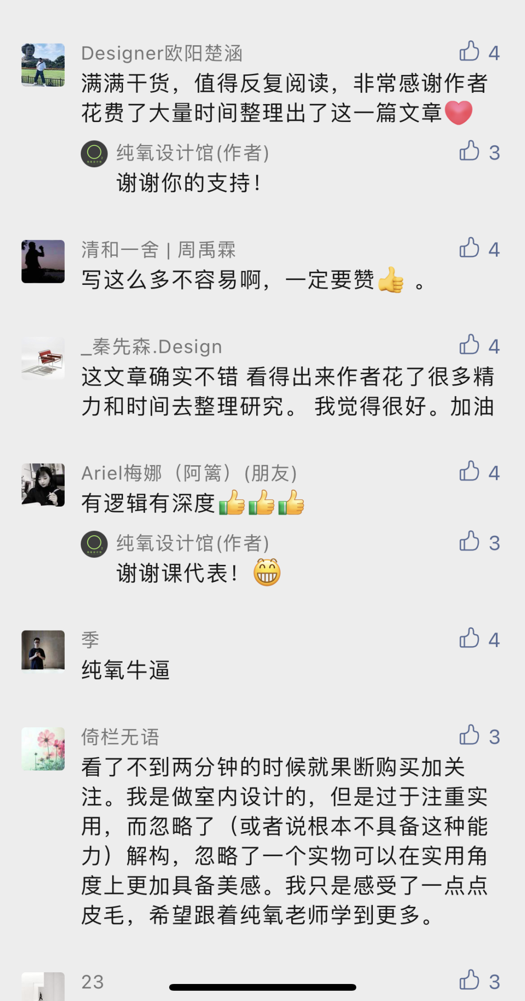 解构斯卡帕专栏的好评如潮,咱们截图了部分的小伙伴的留言,来证明这套课程,真的是对斯卡帕解读最深,制作素材最多、花费时间最多的一篇。如果你仔细阅读完,你会发现,无论是设计手法、思维模式、还是灵感来源,都会有很深的帮助。