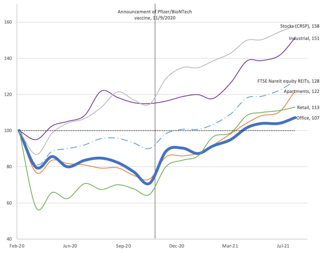 与其他类型的资产相比,办公资产在疫情后就是跌成了狗,现在才算缓过来↑