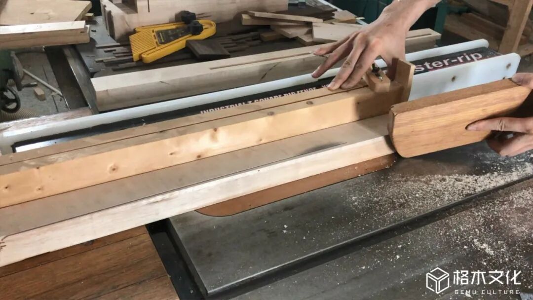 用台锯沿木材顺纹方向开料,开料时除了需要考虑木材纹理,避开节子,还需尽可能地节约木料。