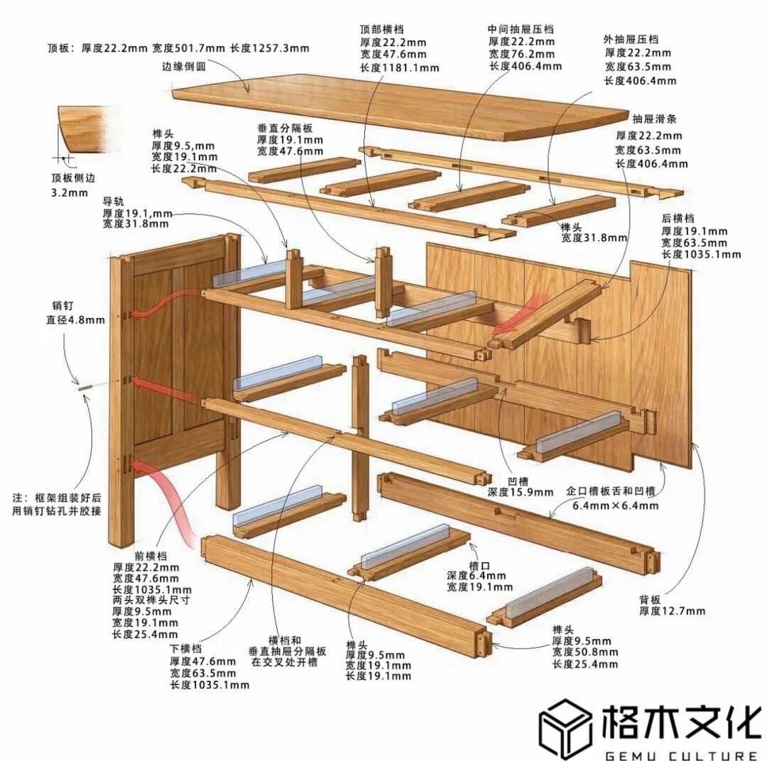 接下来我就以一件拼色桌柜为例,与“格木文化”平台的朋友们分享一下自己在转行后,自学木艺这条道路上的心得与技巧。
