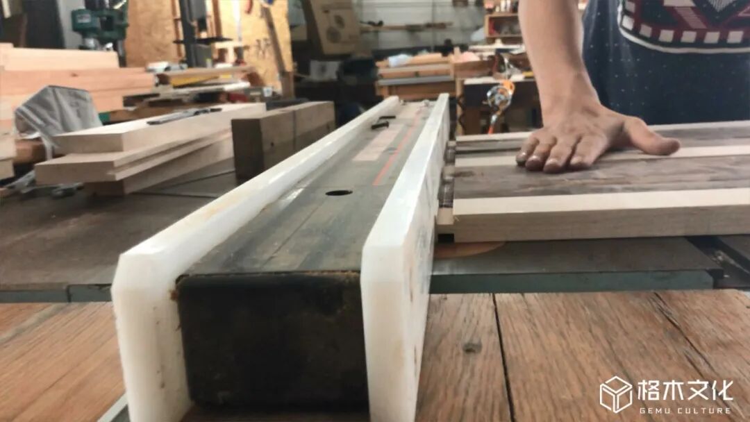 接着,给桌面定宽,将桌面板置于台锯上,截掉面板宽度方向上多余的部分。
