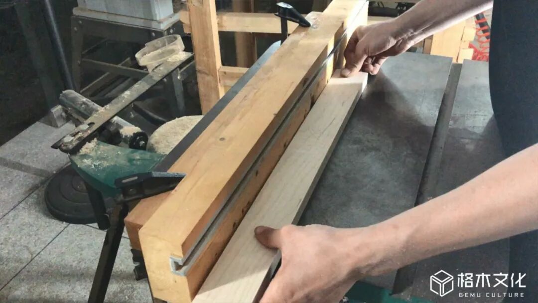 用平刨将木料刨平,刨切方向尽量为顺纹方向(螺旋刀可以减少逆茬)。注意操作安全,尽量使用推把操作,以防受伤。