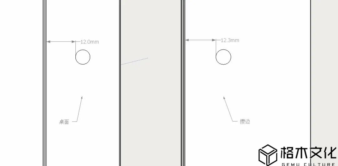 由于攒边打孔距离比桌面主体多0.3-0.5 mm,攒边与桌面结合会更加紧实。