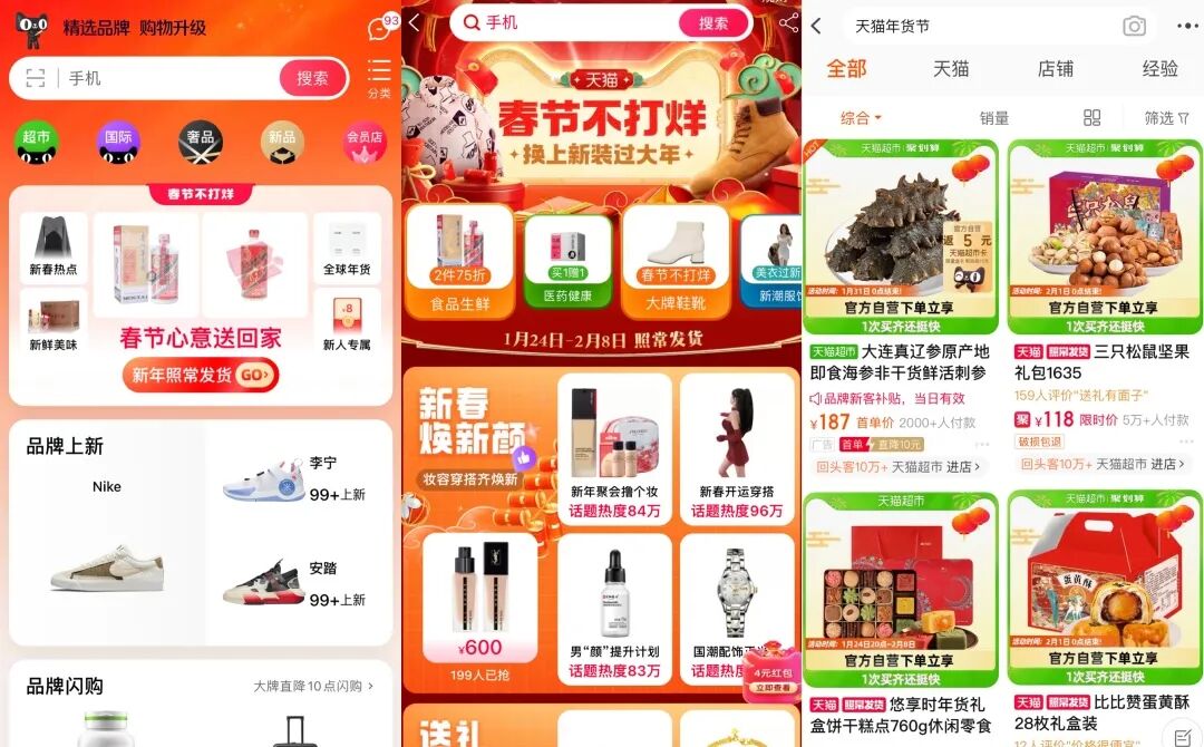 同时,电商平台同样公布了春节不打烊的政策。淘宝天猫近期表示,“春节照常发货”保障区共覆盖95%城市,17万商家持续营业。
