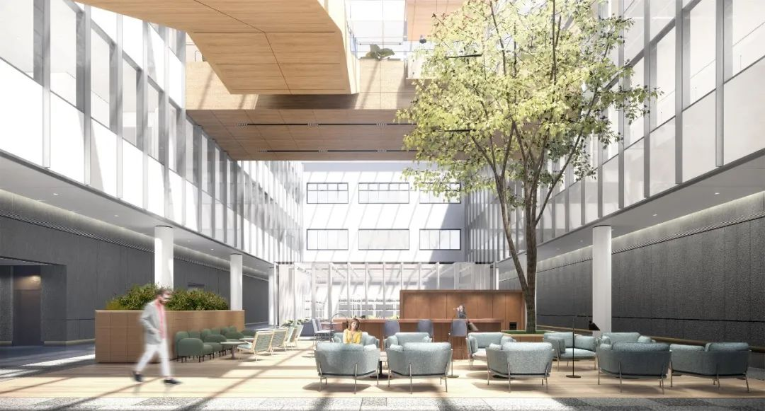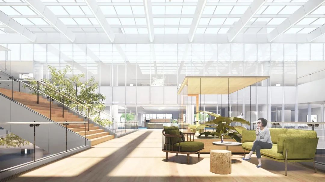 为了引入足够的自然光线,设计师在进深较大的建筑空间内勾画出一片大尺度的中庭空间,同时结合 “昼夜节律”的照明设计,通过控制灯光的色温和照度以营造卓越的光环境。