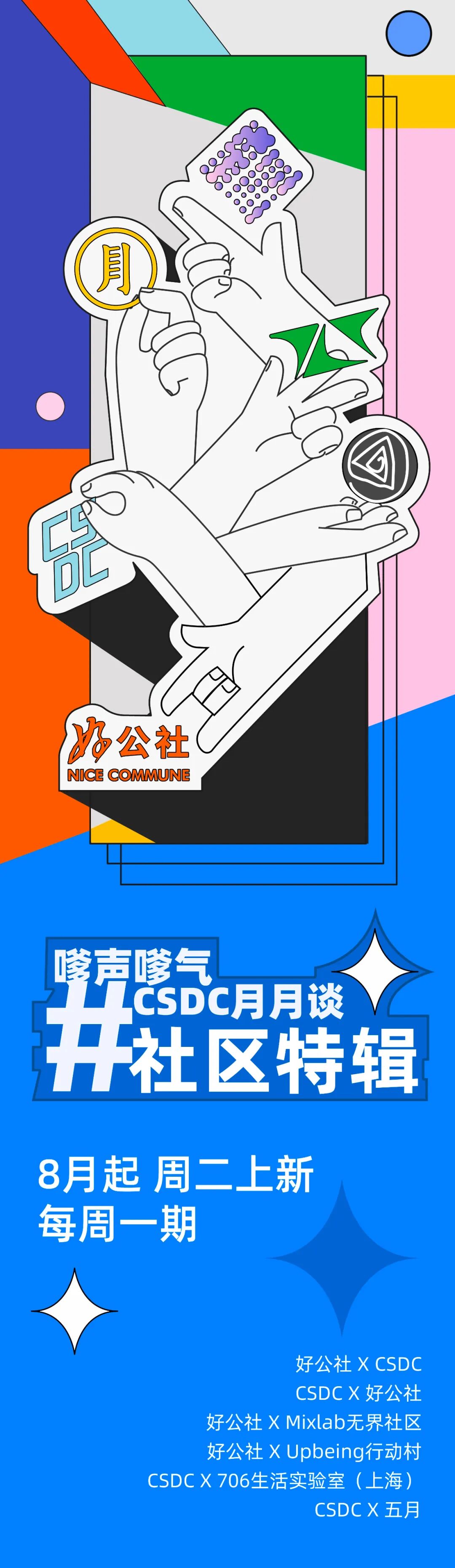在这个八月,NICE公社嗲声嗲气和CSDC月月谈推出 #社区特辑,我们分别作为线上和线下社区,对谈了两位线上社区负责人和线下社区负责人。让线下和线上互联,产生碰撞和火花,共同讨论社区中的二三三事。